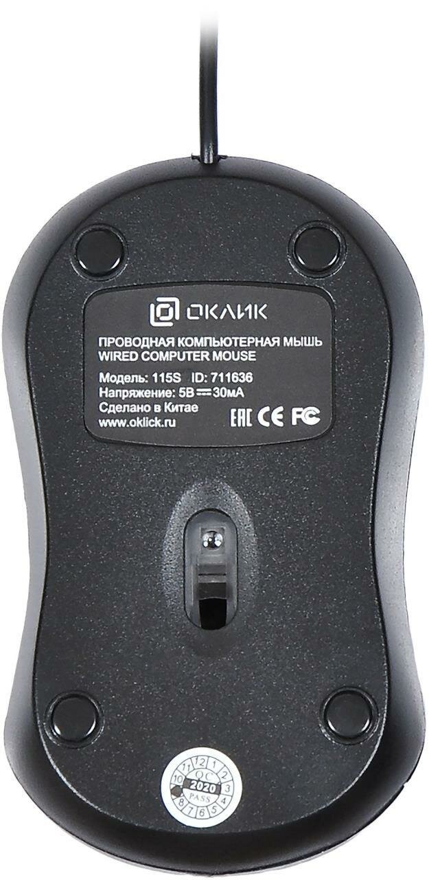 Мышь Oklick 115S, оптическая, проводная, USB, черный [711636]