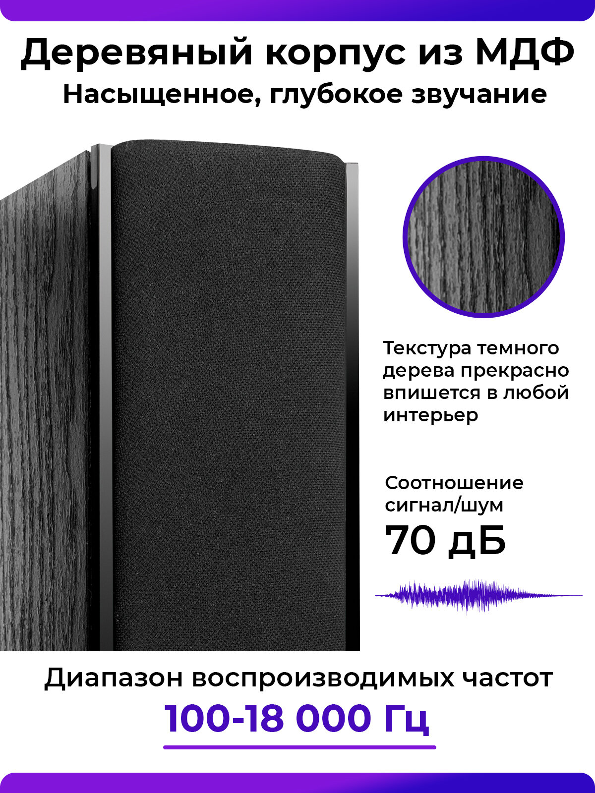 | Плюсы: | Отличный звук, приятный внешний вид, деревянный корпус. |