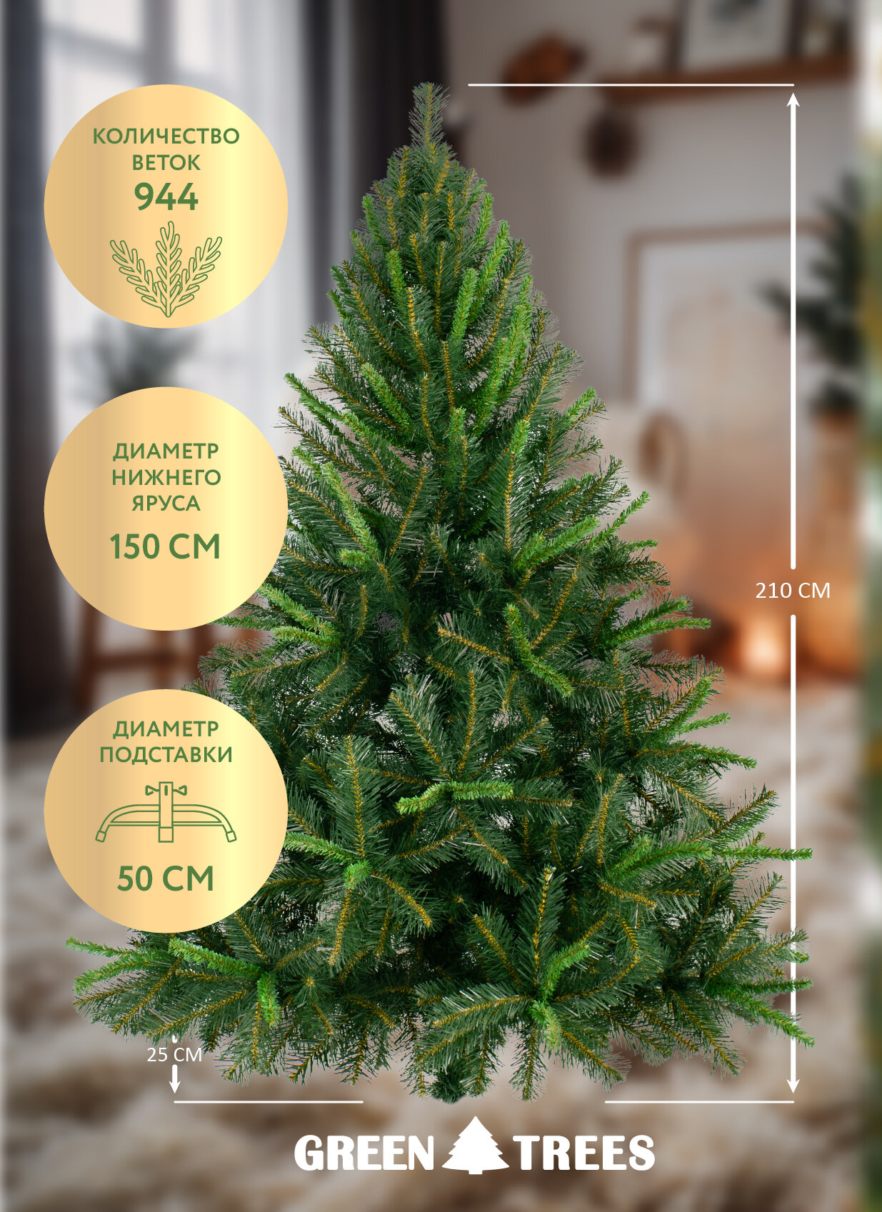 Новогодняя искусственная ель Грин Триз "Таежная", плёнка ПВХ, высота 2,1
