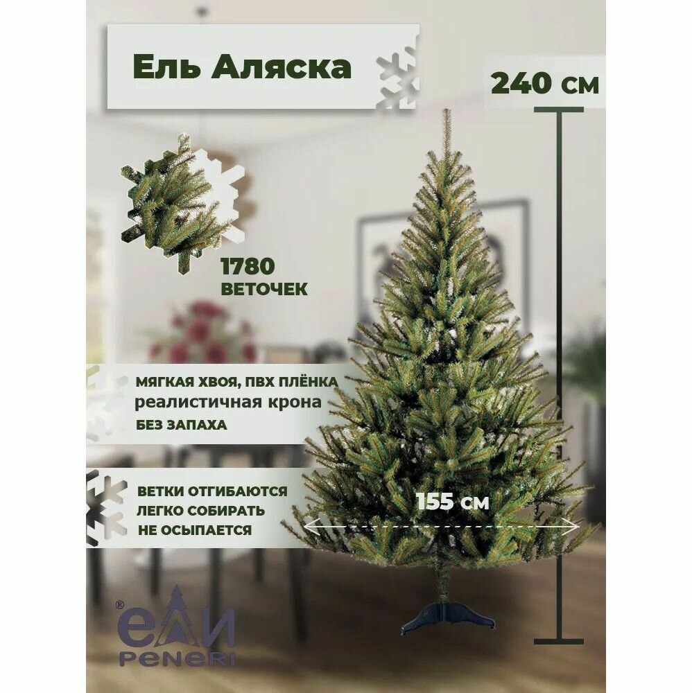 Искусственная елка "Аляска", (хвоя - PVC), 2.4 м, Ели PENERI