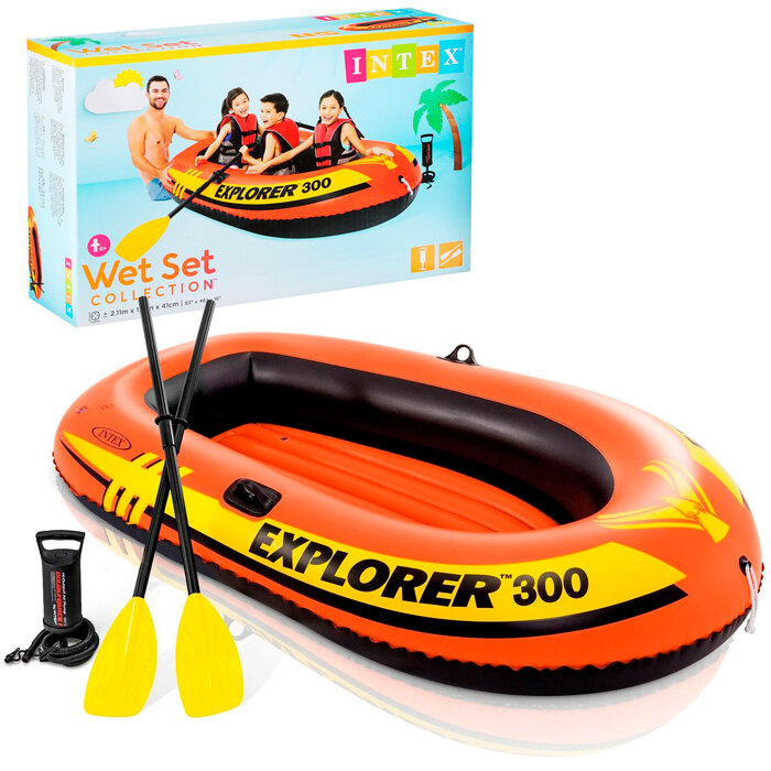 Лодка надувная Intex Explorer 300 Set, 211 х 117 см + ручной насос, пластиковые весла