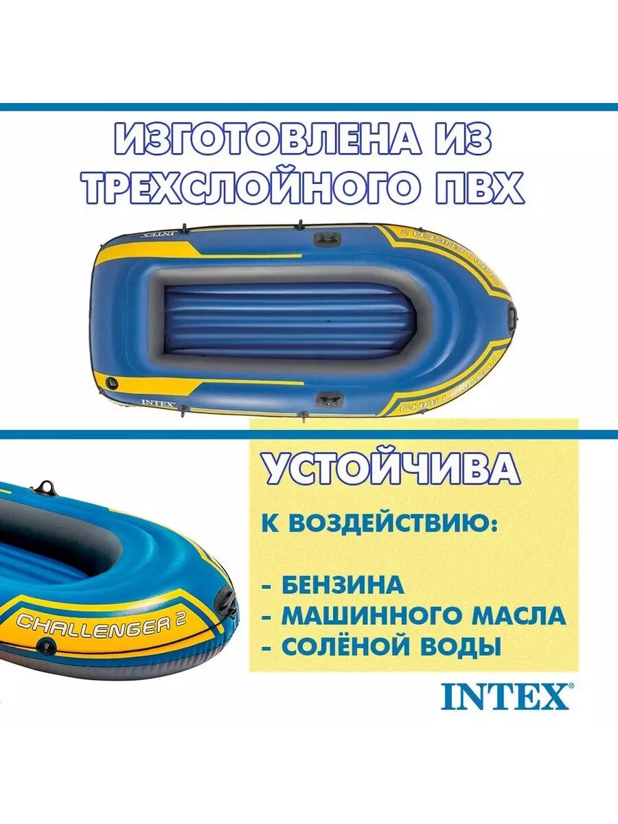 Купить Надувная лодка Intex 68367 "Challenger 2", 236х114х41см, вёсла 59623, насос 68612, до 200кг
