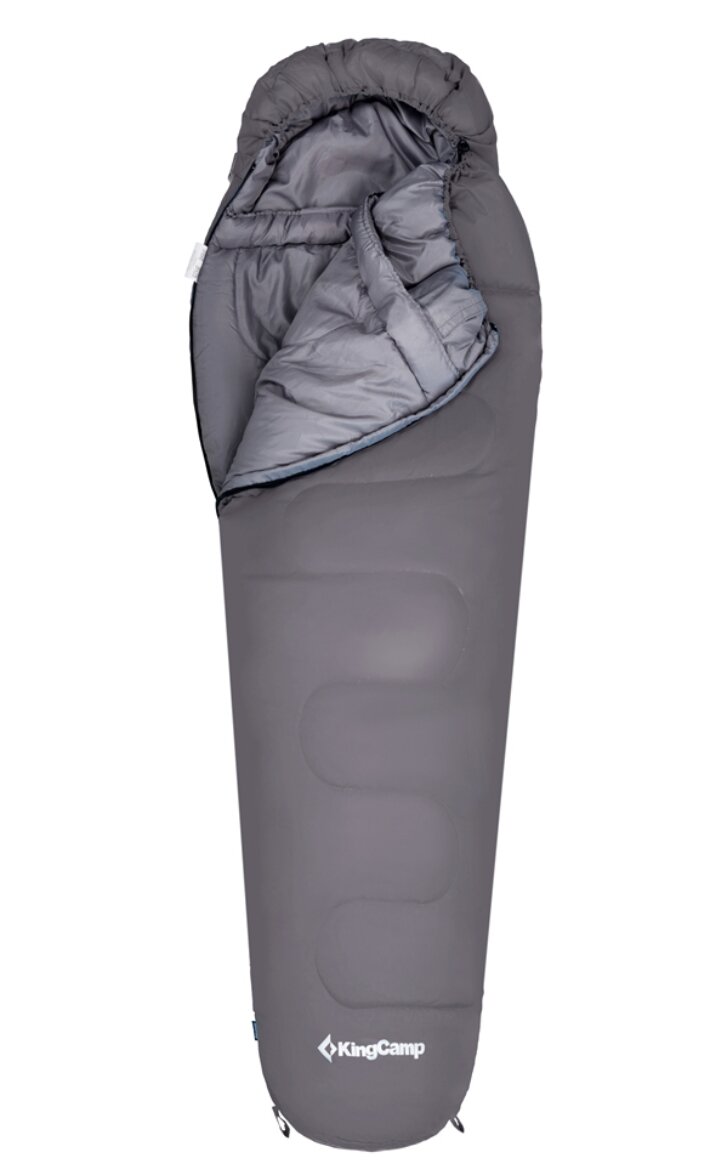 СохранитьСпальный мешок туристический кокон KingCamp KS3131 TRECK 300 -13C, цвет: серый, левая молния интересное:
