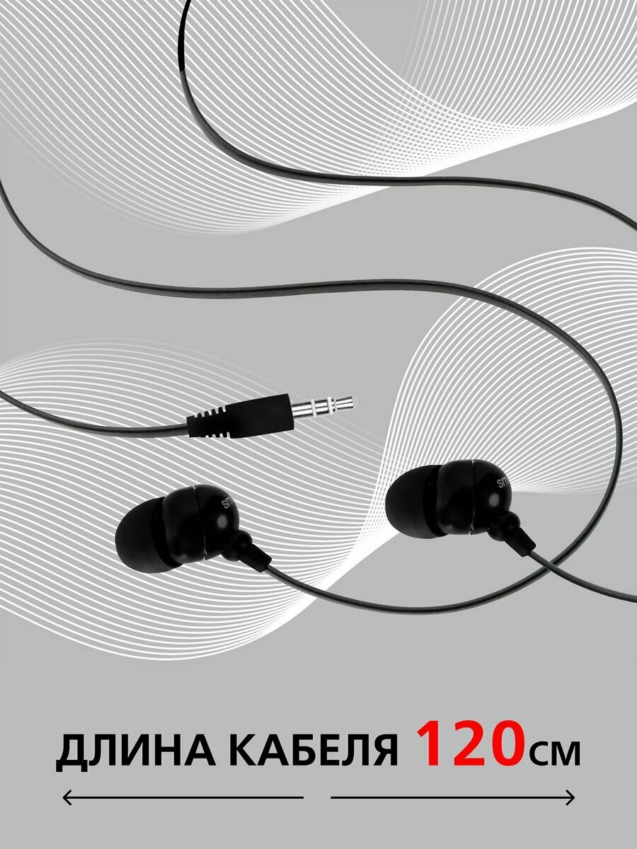 Наушники внутриканальные SmartBuy COLOR TREND,провод 1.2м,черные.(арт.SBE-1100)/320, 1 шт