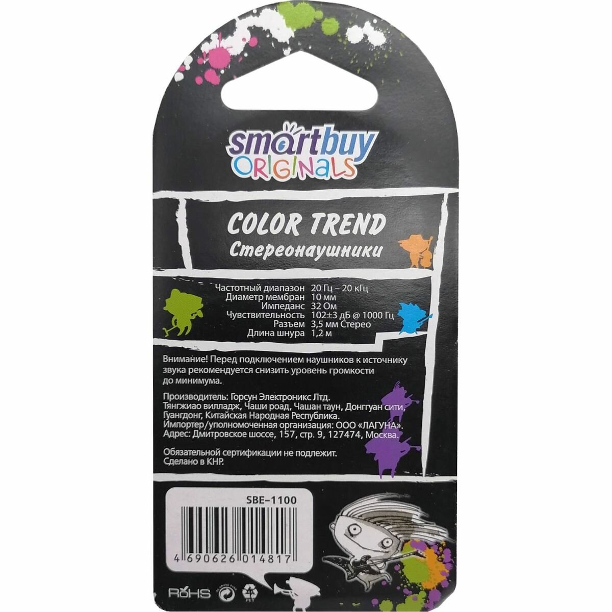 Наушники SmartBuy® COLOR TREND, провод 1.2м, черные (арт. SBE-1100)