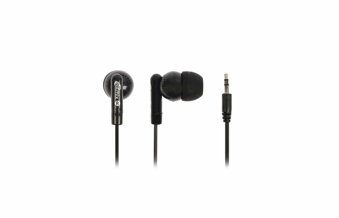 Ritmix RH-010 Black (внутриканальные, чёрные, 20Гц-20кГц, 32Ом, 80 дБ/мВт, 3.5мм, кабель 1,2 м)