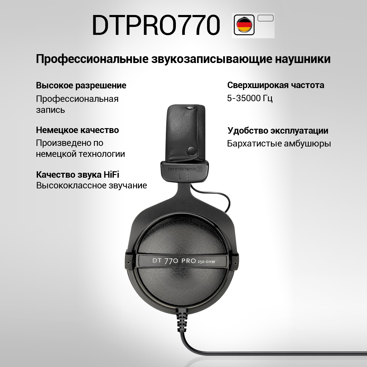 Beyerdynamic DT770 Pro 80 Ohm студийные наушники закрытого типа для мониторинга и записи музыки