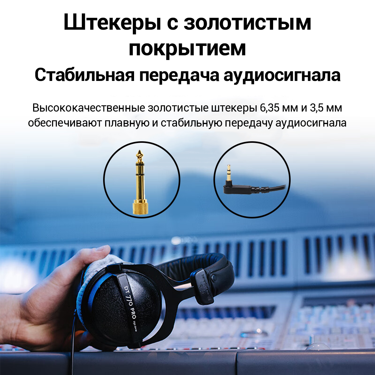 | Плюсы: | - Звук <br>- Велюровые, сменные амбушюры <br>- Удобная конструкция <br>- Навинчивающийся переходник на Jack 6.35mm |