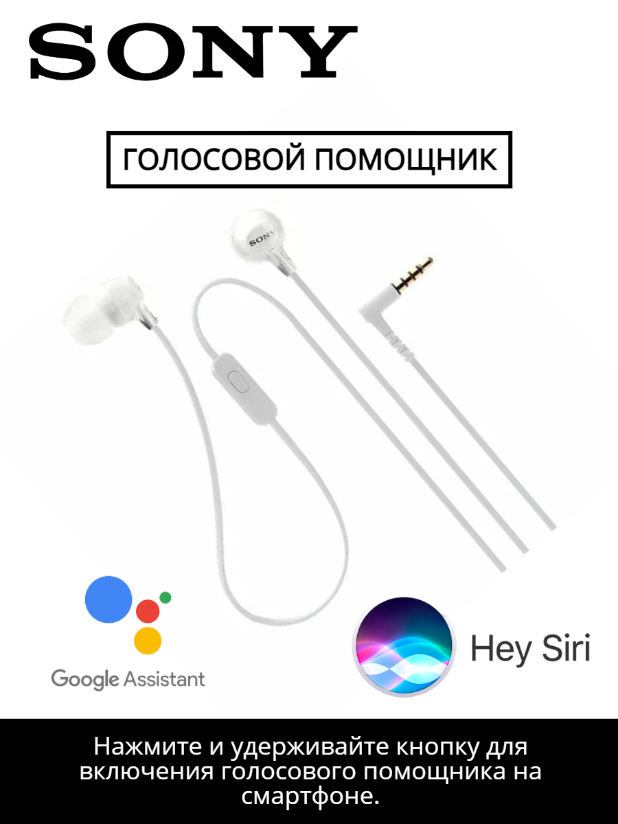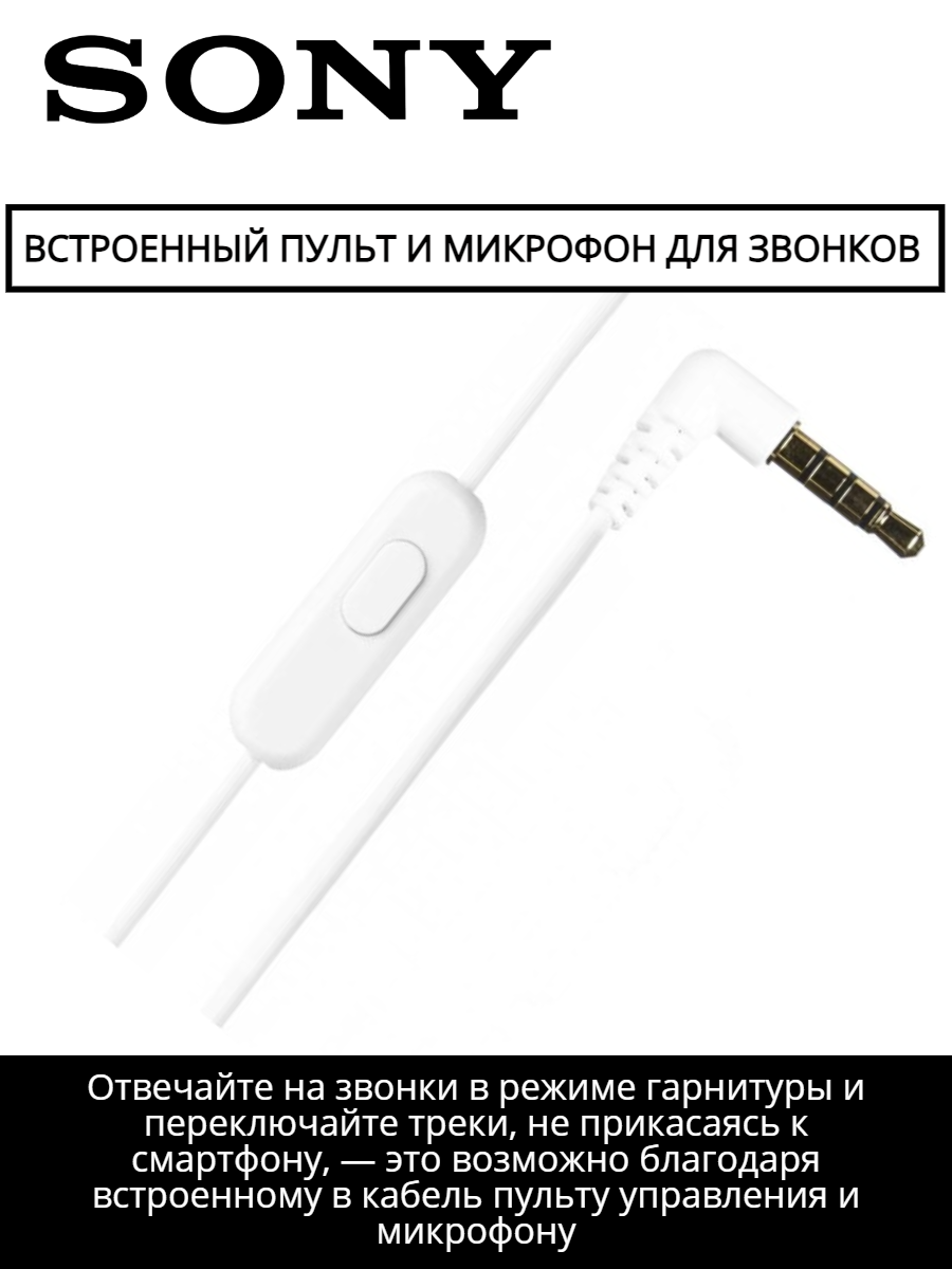 SONY Проводные наушники MDR-EX15AP с микрофоном и кнопкой для ответа, mini jack 3.5 mm , белый / white