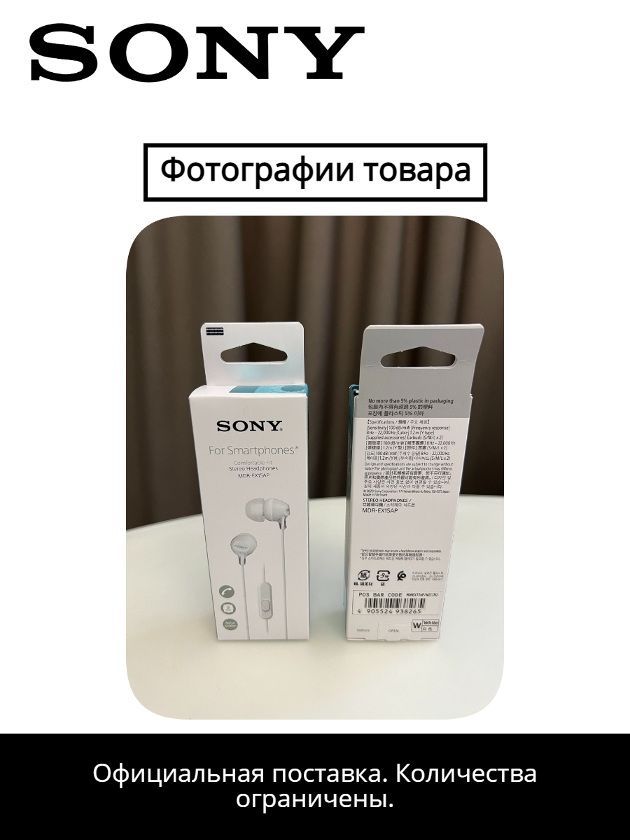 СохранитьНаушники Sony MDR-EX15AP, проводные с микрофоном, белые, оригинал, РСТ интересное: