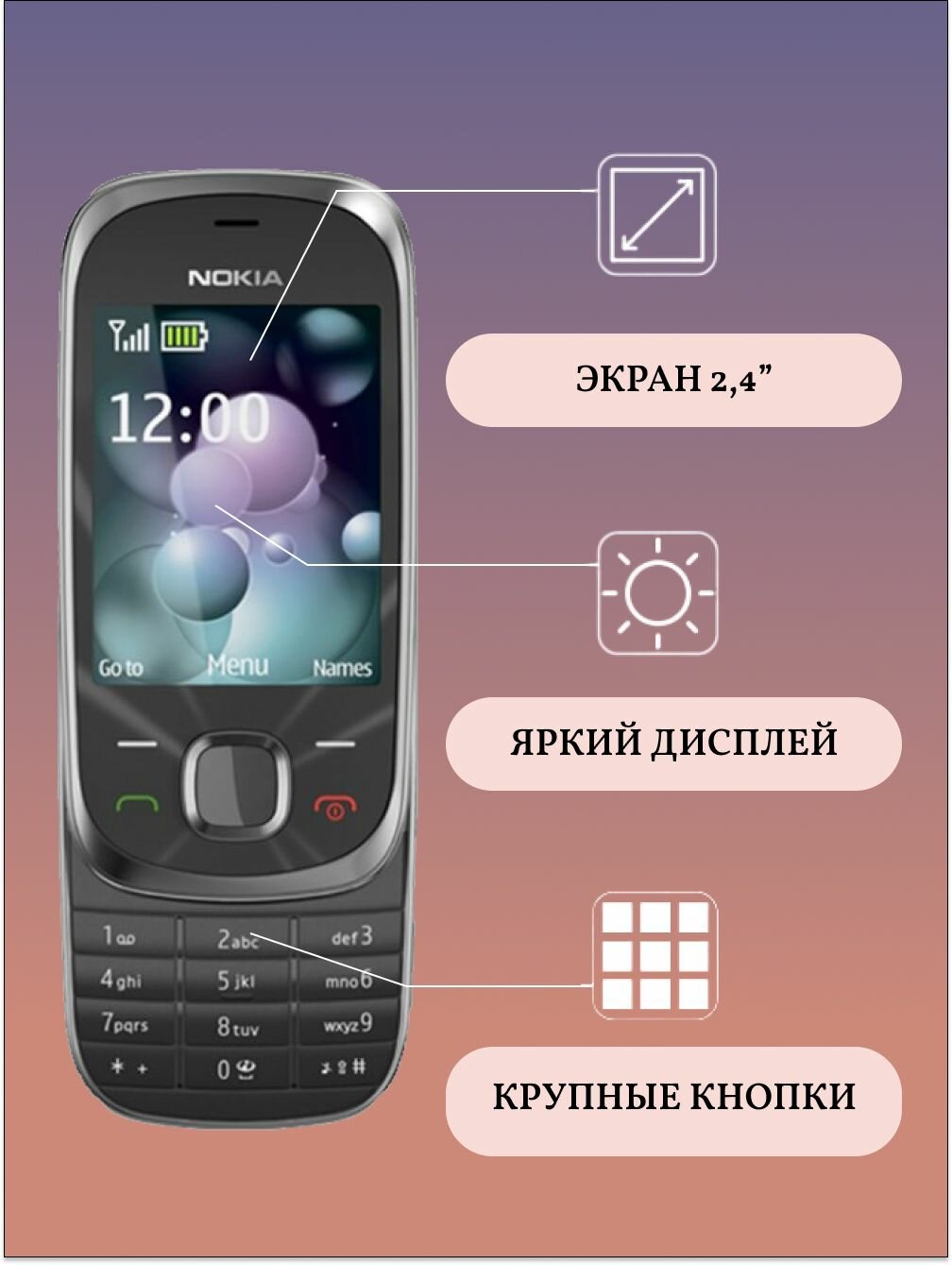 7230 Мобильный телефон кнопочный слайдер