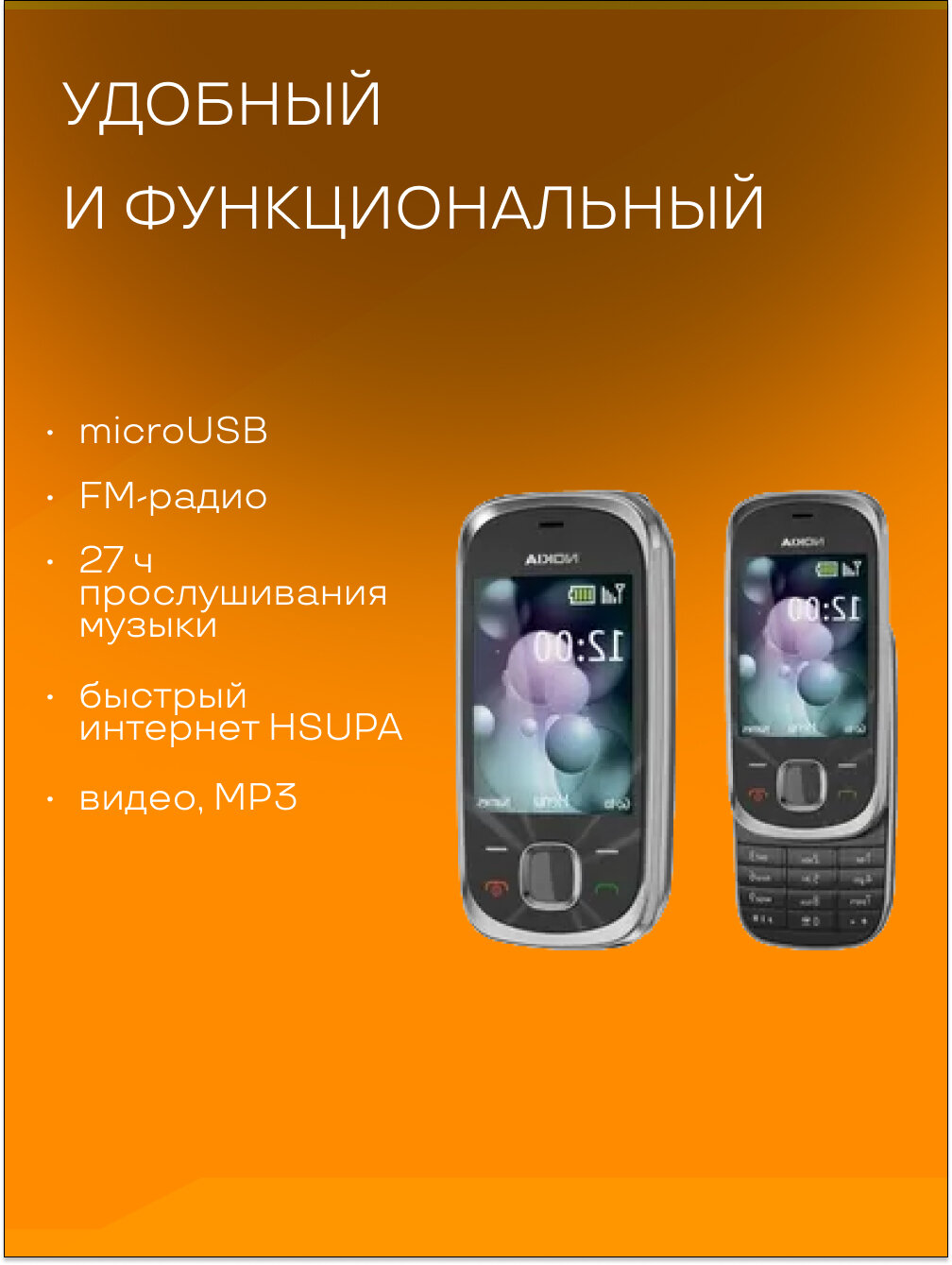 Мобильный телефон Nokia 7230 Slide Black интересное: