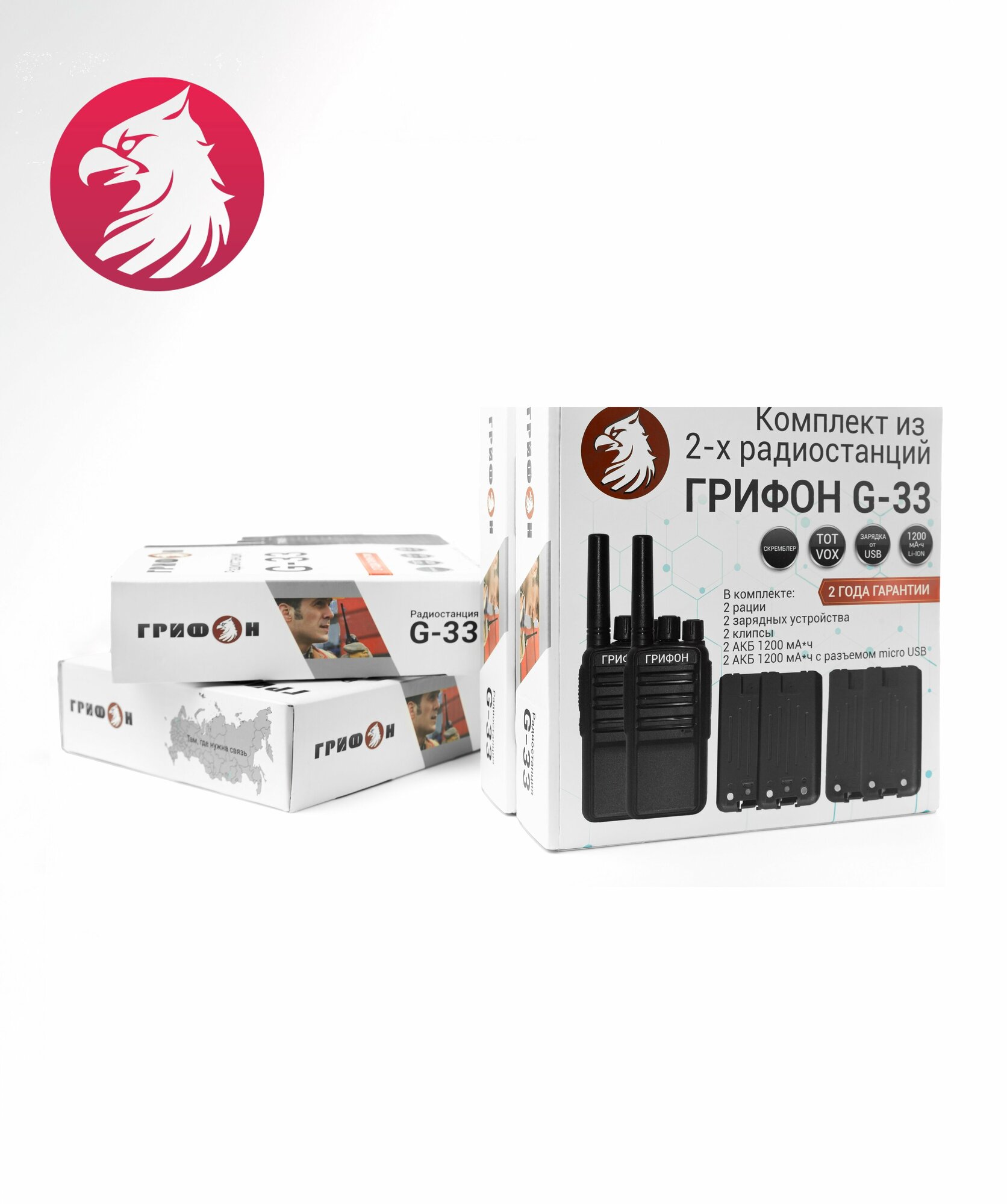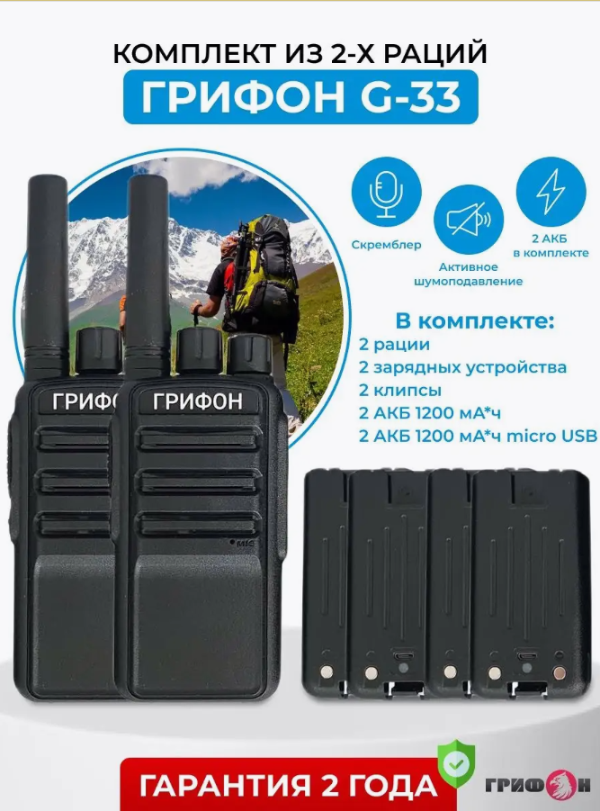 СохранитьКомплект FM раций Грифон G33 _2-шт и 4-е АКБ, для работы, туризма, дачи, с дальностью до 11 км акция интересное: