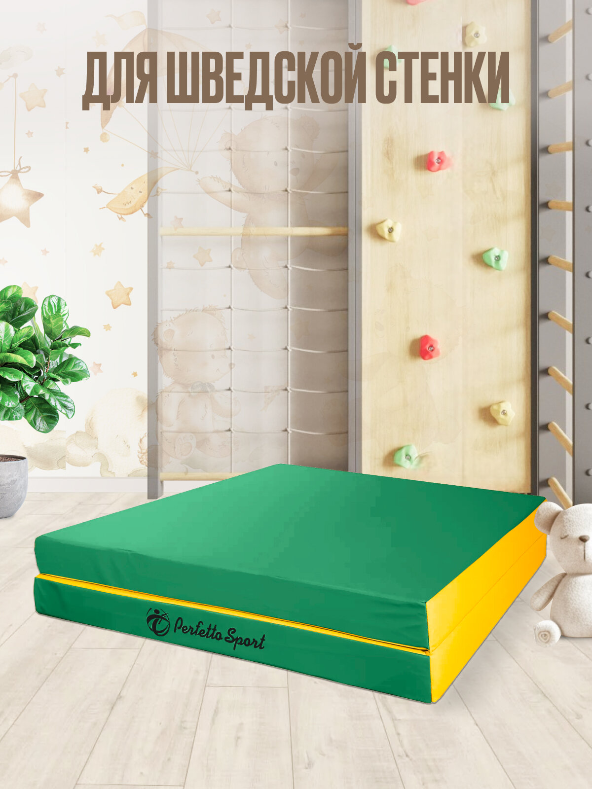 Мат спортивный для шведской стены детский гимнастический "PERFETTO SPORT" 10 (100 х 150 х 10) складной жёлтый