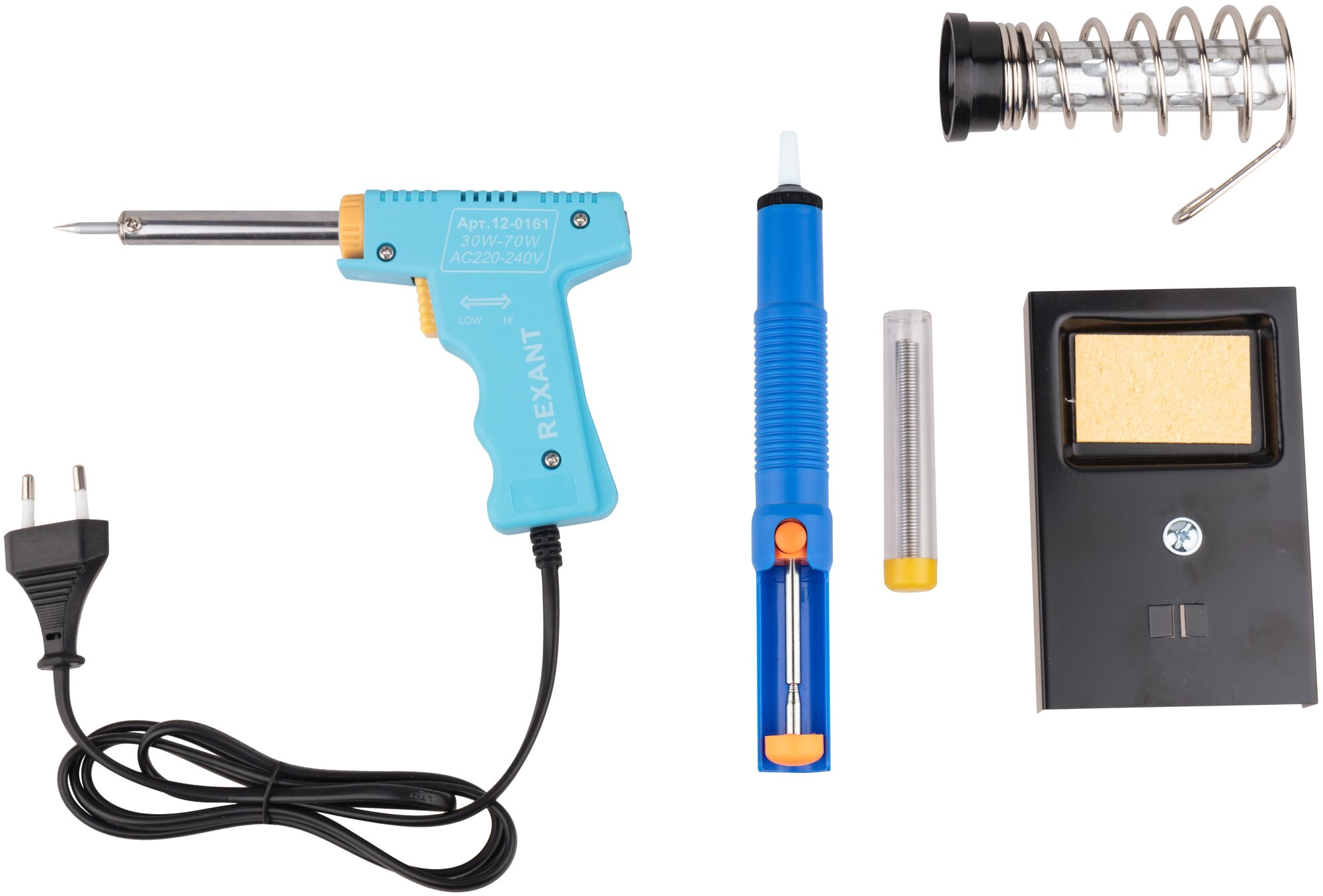 Набор Rexant ZD-303-A 12-0164 для пайки (паяльник импульсный 30/70 Вт, оловоотсос, подставка, припой)