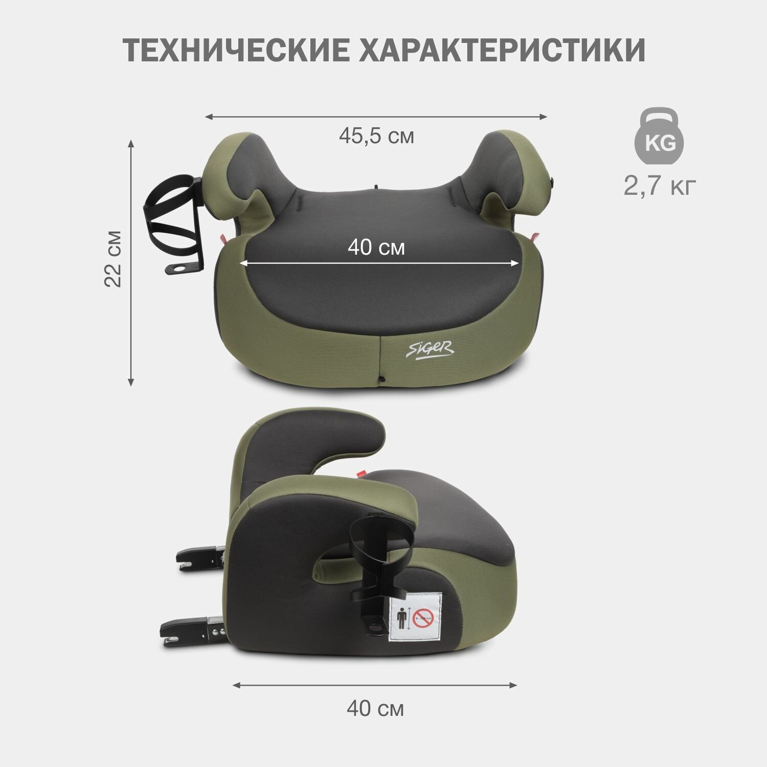 Бустер автомобильный Siger Booster Fix Lux от 22 до 36 кг, цвет темный лес