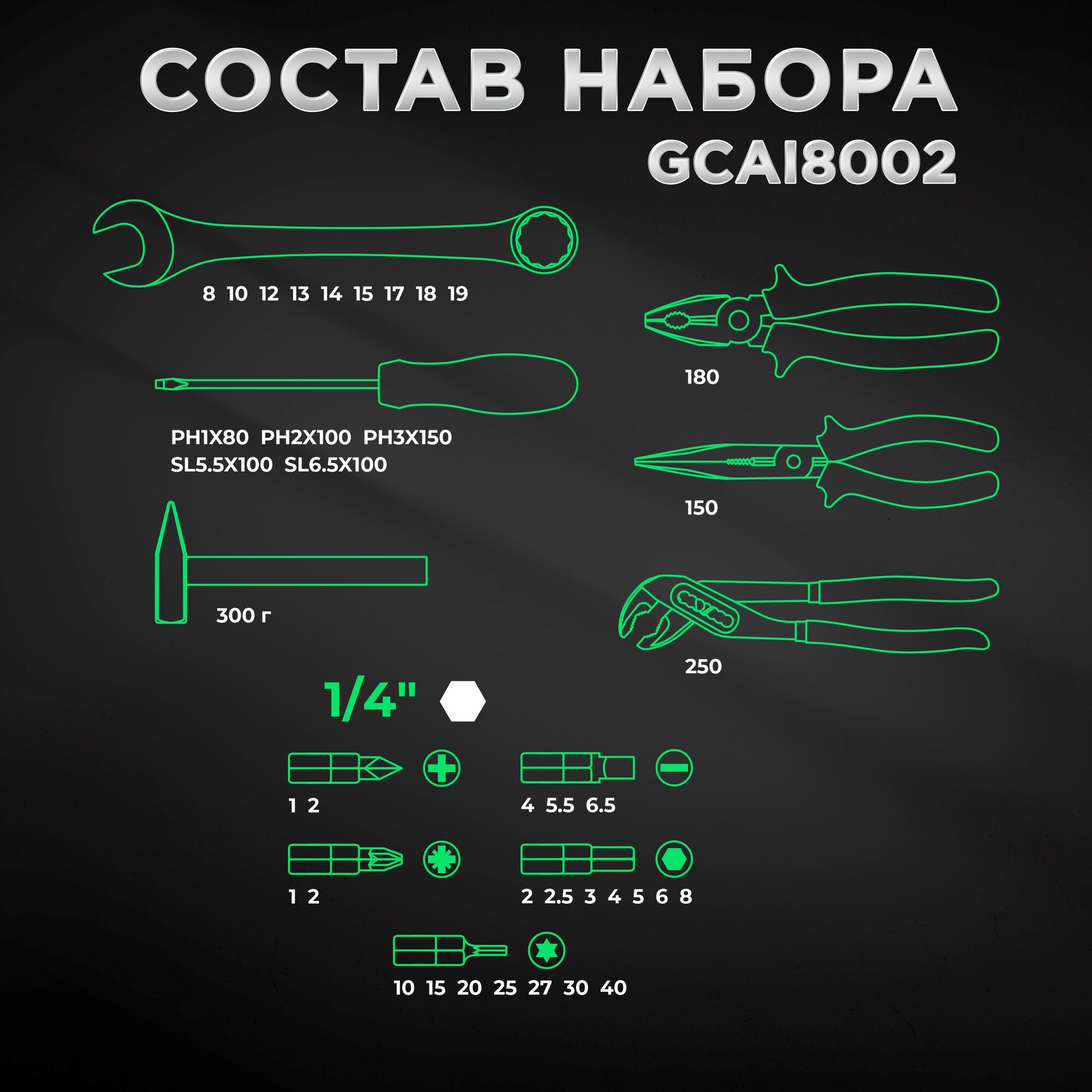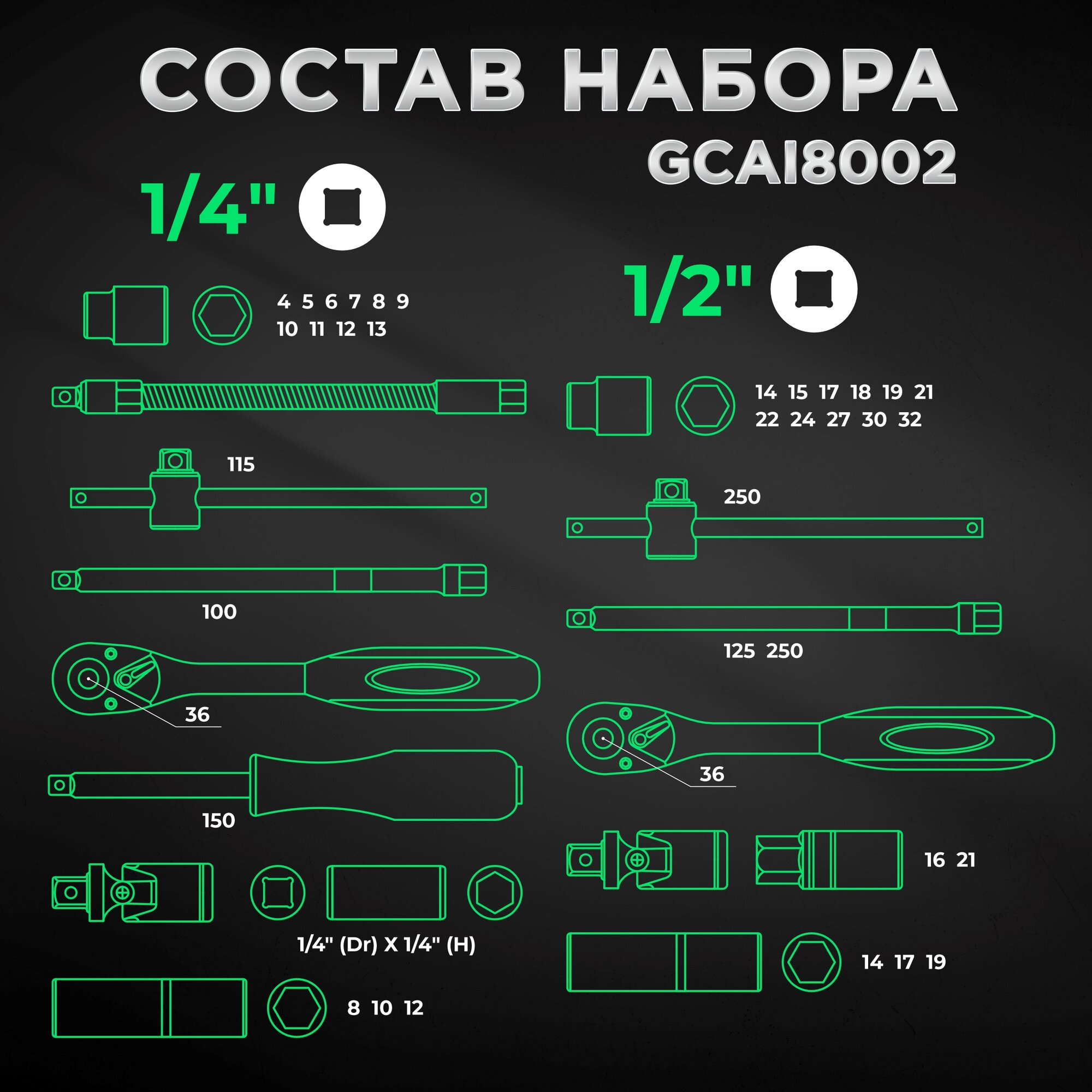 Набор слесарного инстр-та в чем. 80предм. 1/4",1/2", 6гр. TOPTUL (GCAI8002) (GCAI8002)