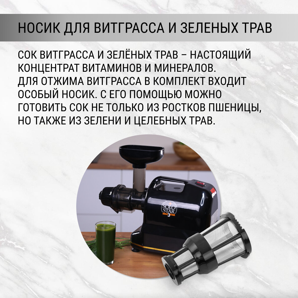 Соковыжималка шнековая горизонтальная Tribest Solostar 3, для витграсса интересное: