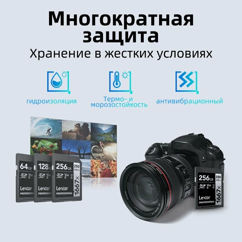 Карта памяти LEXAR Professional 1667x SDXC UHS-2 U3 V60 256 ГБ