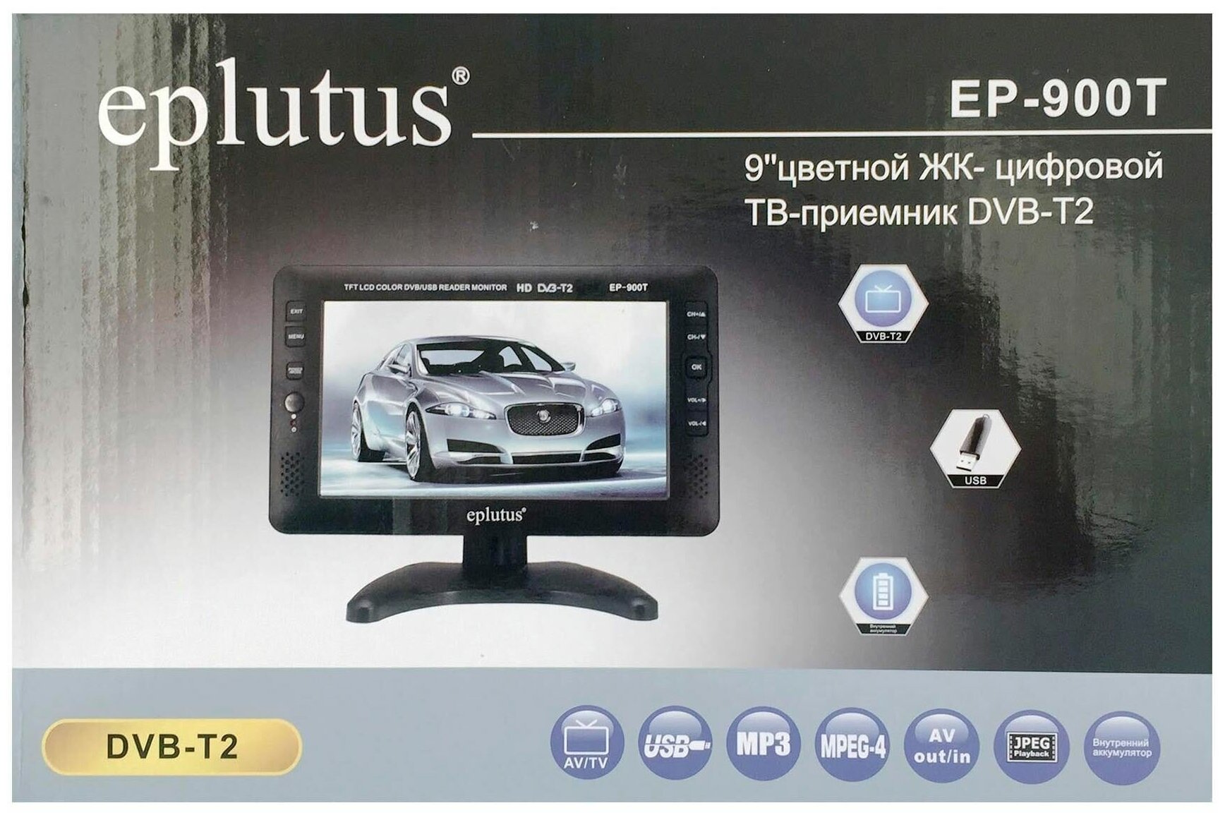 Автомобильный компактный телевизор Eplutus EP-900T (W3232RU) с ЖК 9-дюймовым экраном. Автомобильный телевизор Eplutus 9 HD