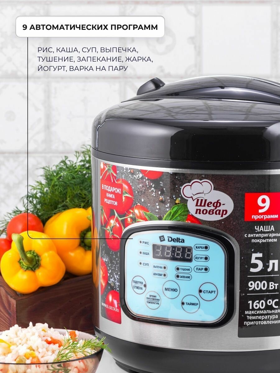 Мультиварка 5.0Л 900ВТ 9 прогр антиприг покр ЭЛ УПР ШЕФ-повар DELTA