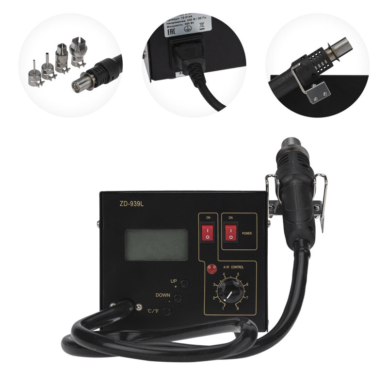Паяльная станция цифровая термовоздушная 220V, 160-480С REXANT ZD-939L 12-0144