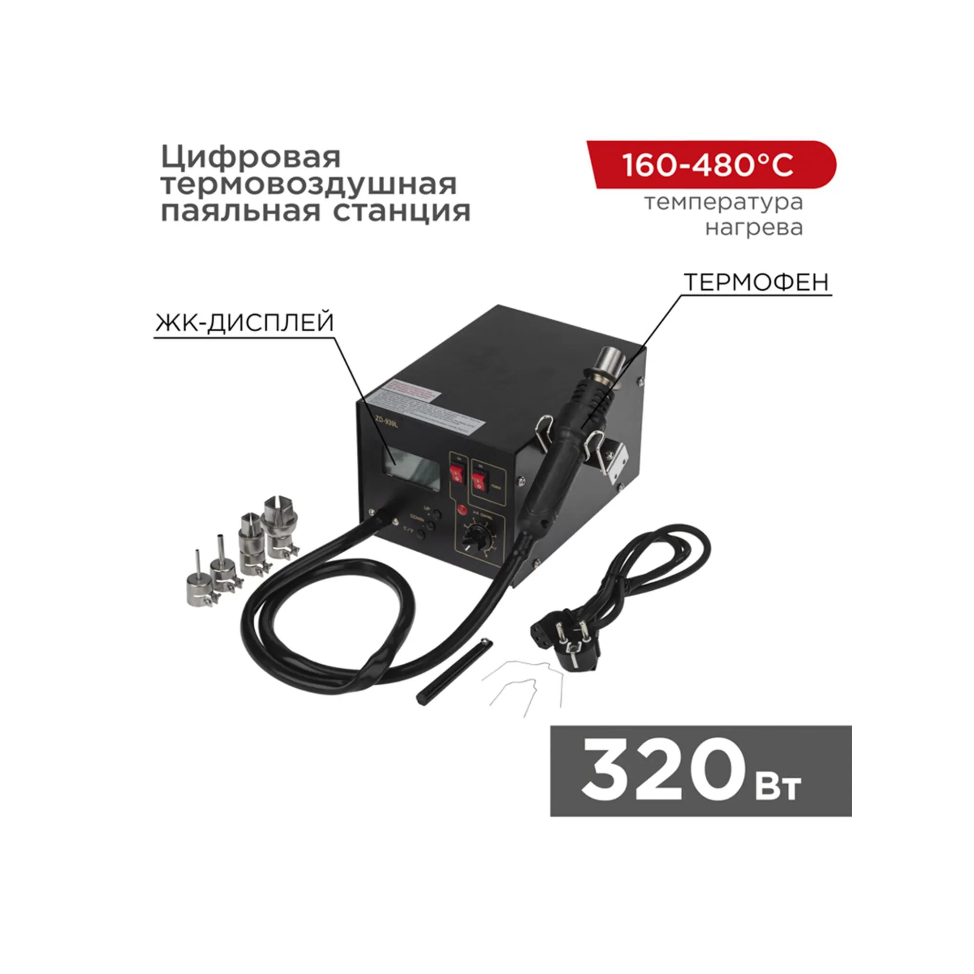 Цифровая термовоздушная паяльная станция REXANT, 220 В, 160-480 градусов