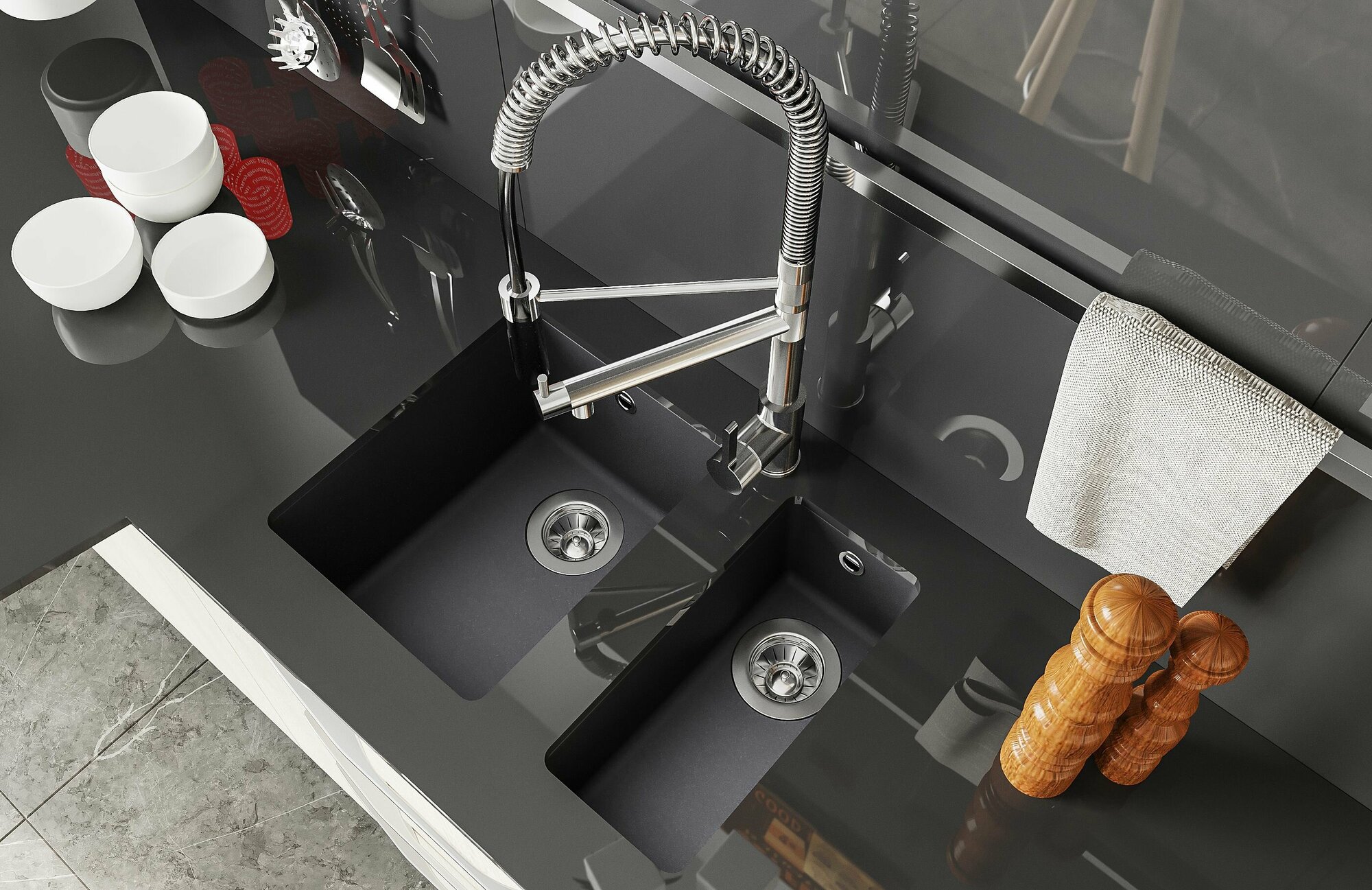 Мойка для кухни подстольная каменная Florentina ВЕГА-335/160, цвет антрацит, прямоугольная, двойная, 550х420х217 мм