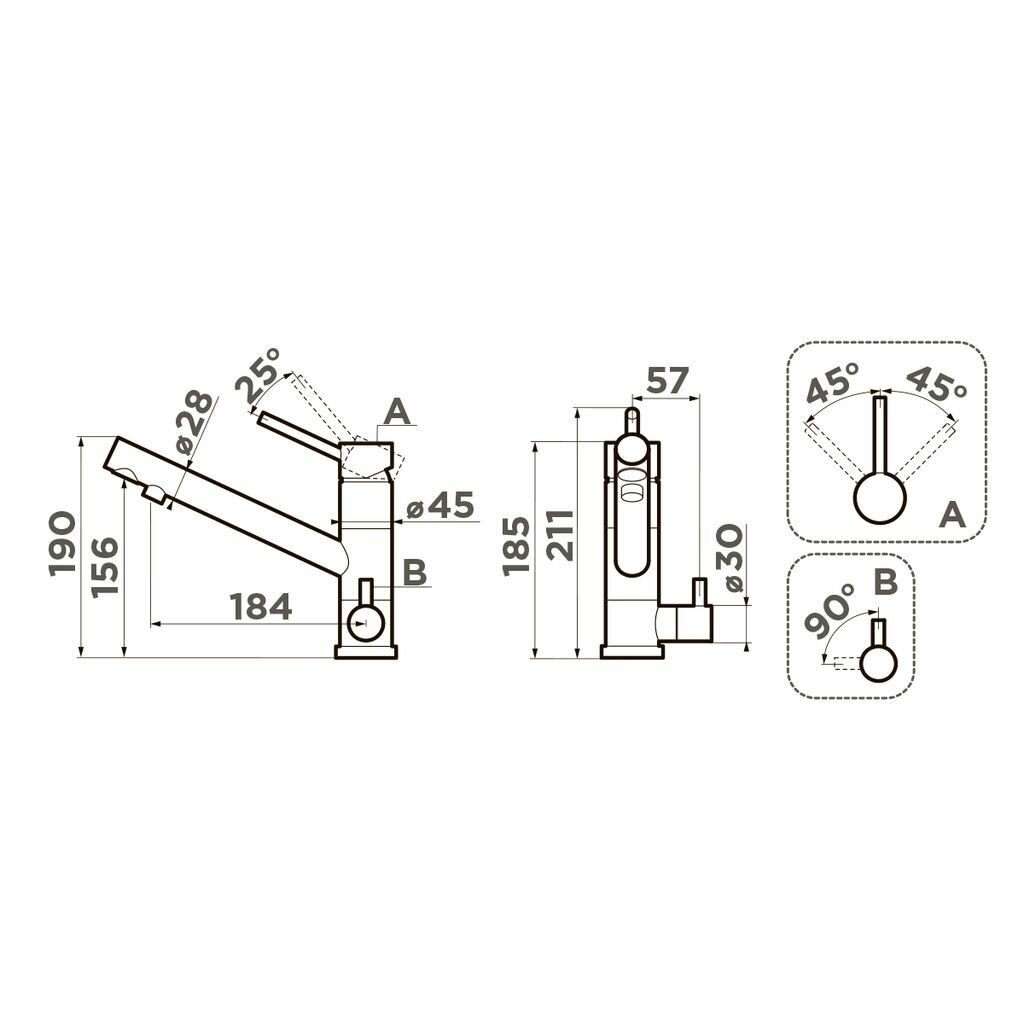 | Высота излива | 156 мм / 190 мм |
