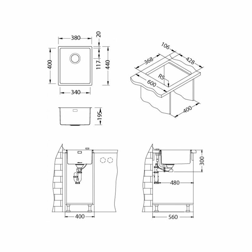 Мойка KOMBINO 20 SAT-90 340X400X195