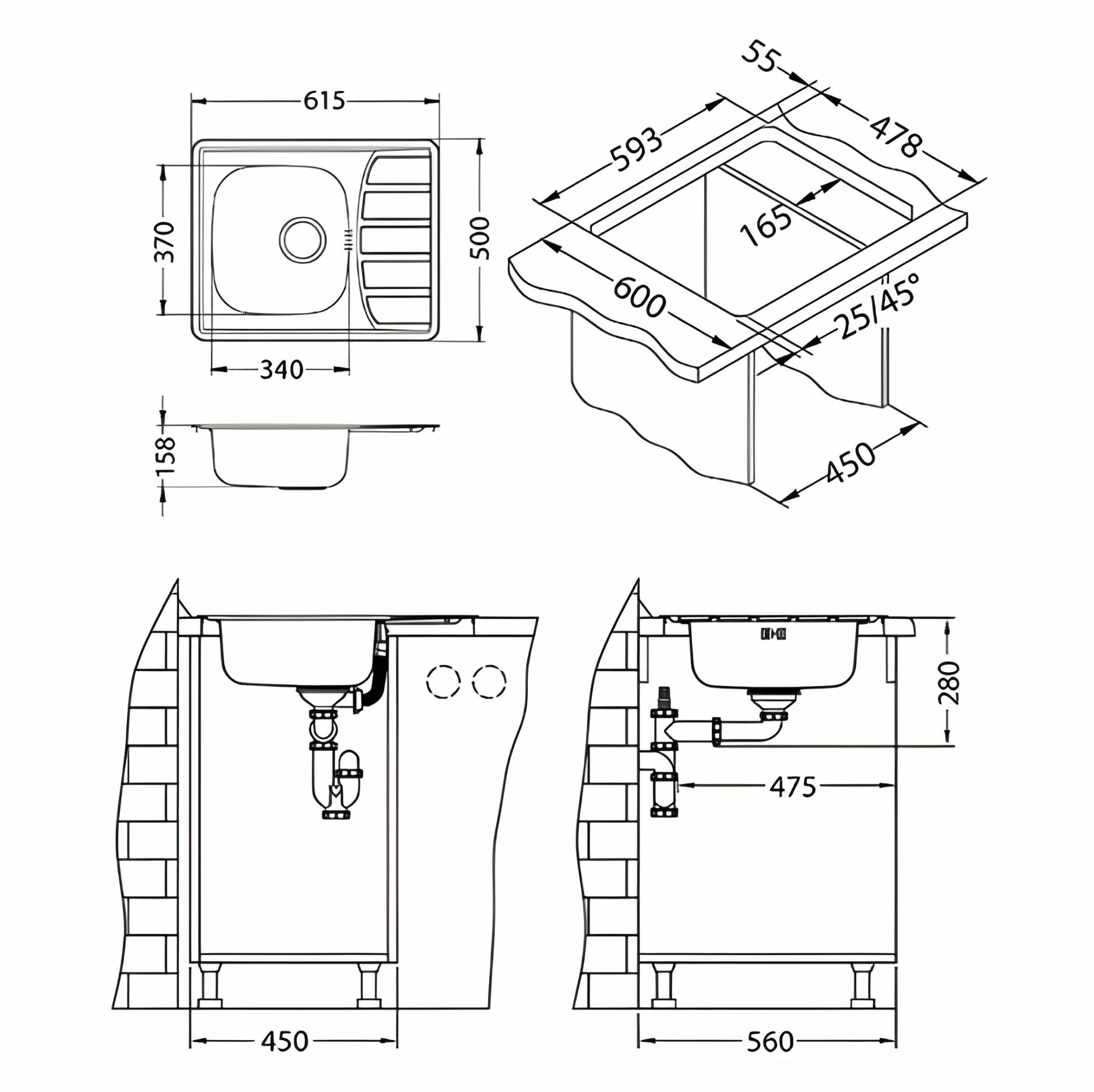 Мойка ZOOM 10 LEI-90-615X500 в комплекте с сифоном 1130550,