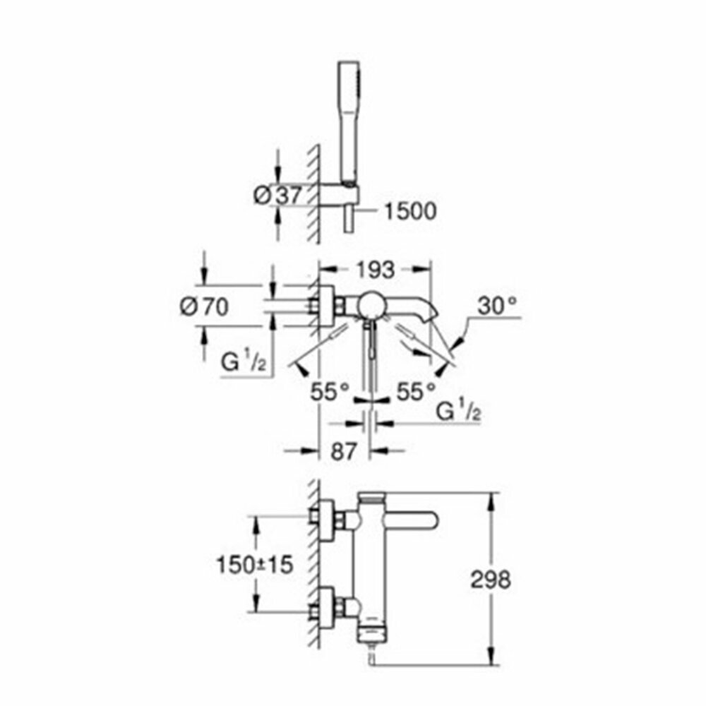 Смеситель для ванны Grohe Essence с душевым гарнитуром, хром 33628001