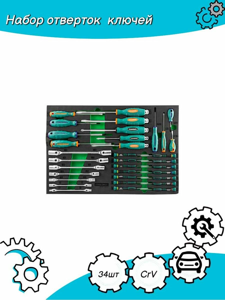 Jonnesway D737134SV Набор стержневых отверток, отверток для точной механики и торцевых шарнирных ключей. 34 предмета в EVA ложементе 560x400 мм. 49272