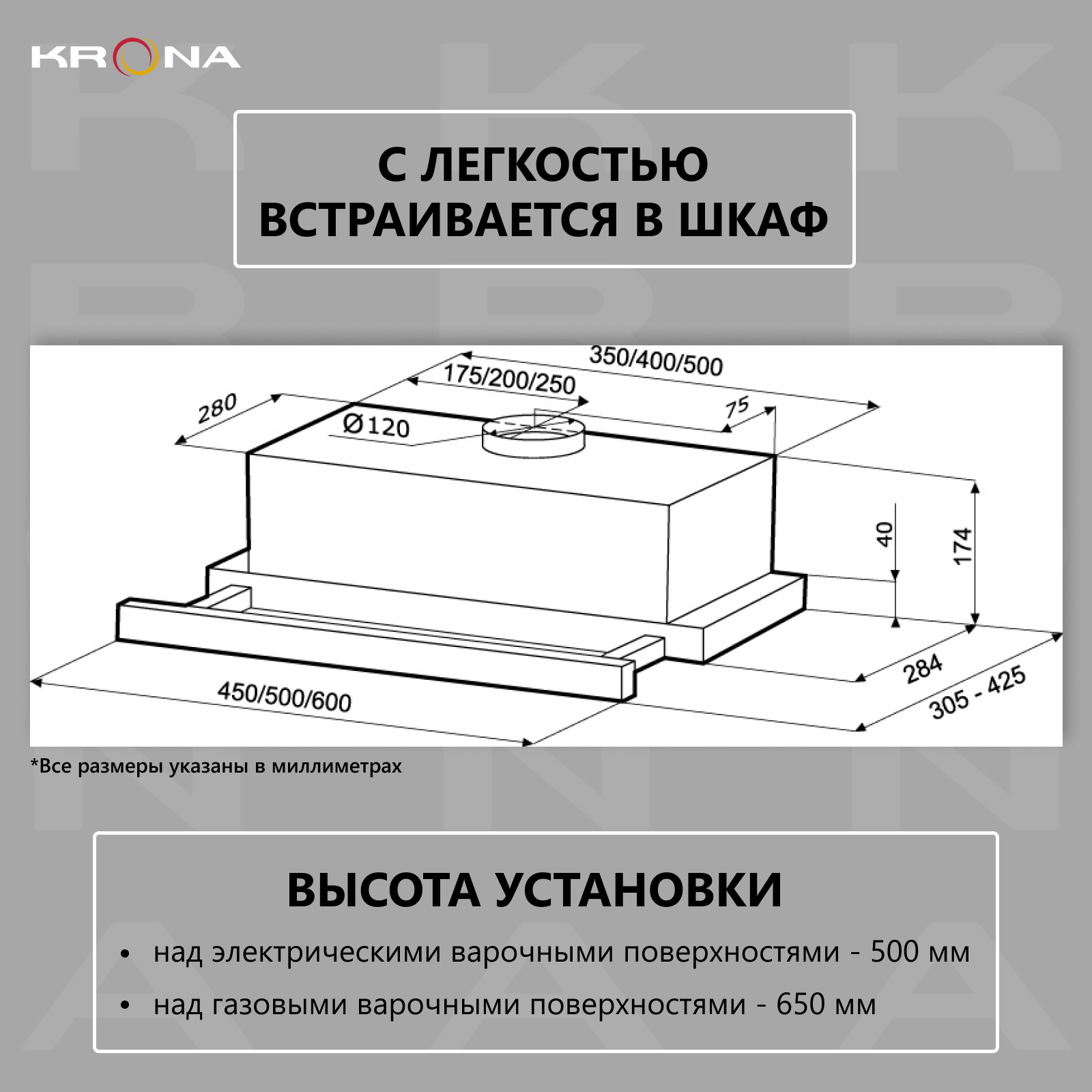 Вытяжка встраиваемая Krona Kamilla 600 черный управление: кнопочное (1 мотор)