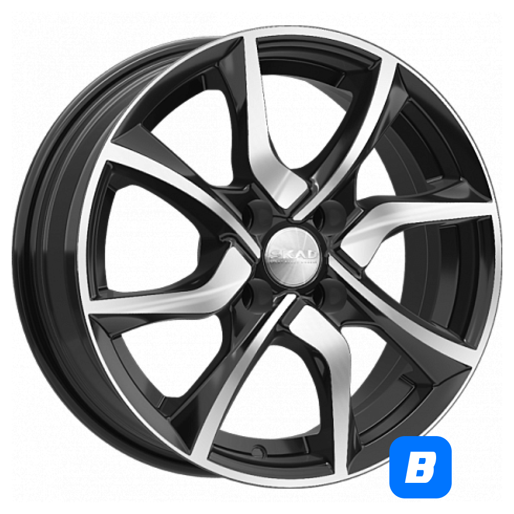 Литые колесные диски SKAD (СКАД) Тулон 6x15 4x100 ET46 D54.1 Чёрный глянцевый с полированной лицевой частью (2031205)