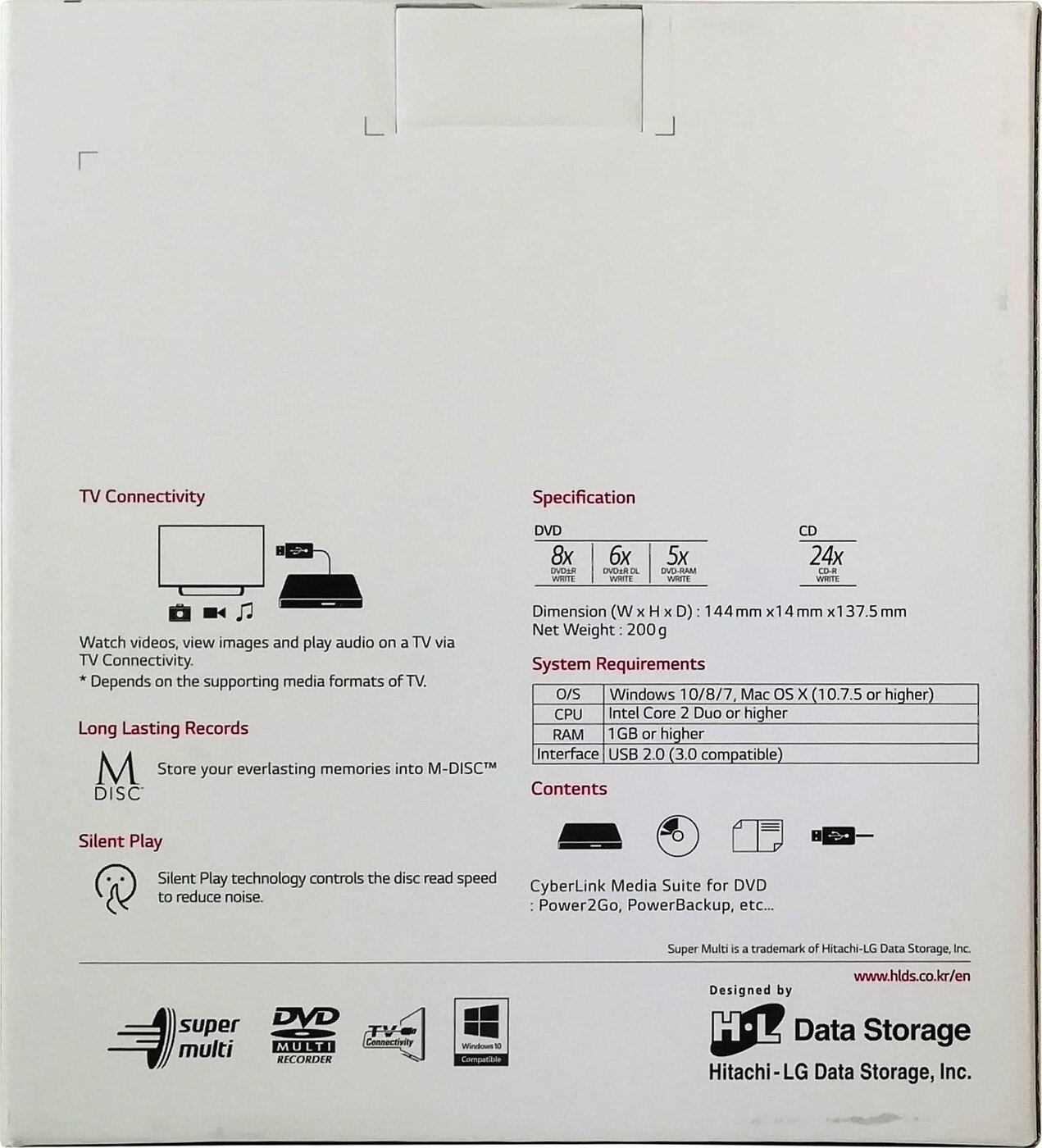 P/N: MAY66031916 Ver.A Производитель: Hitachi-LG Data Storage Korea, Inc. Официальный сайт производителя https://hitachi-lg.com/kr/products/odd/ на нём можно скачать утилиту для обновления прошивки под Windows (обновил прошивку с 1.0.1807.1201 до 1.0.1807.2501. под WinXP в Virtualbox). |