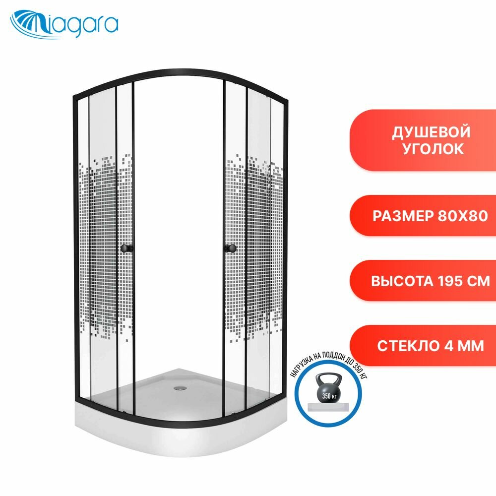 Душевой уголок Niagara Eco 80x80 прозрачный с рисунком, черный (NG-003-14 BLACK)