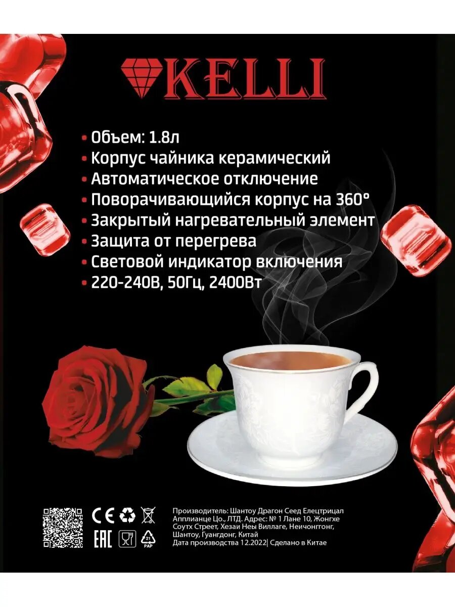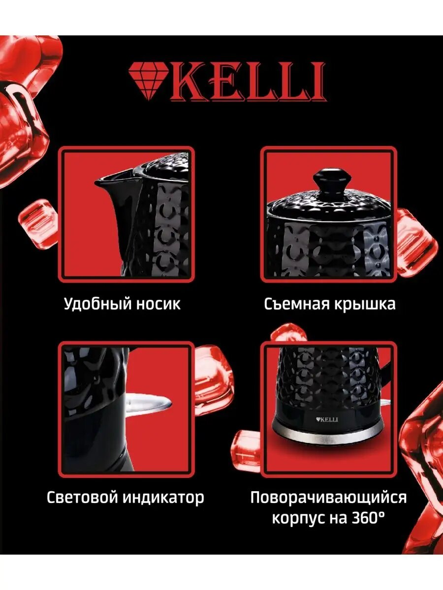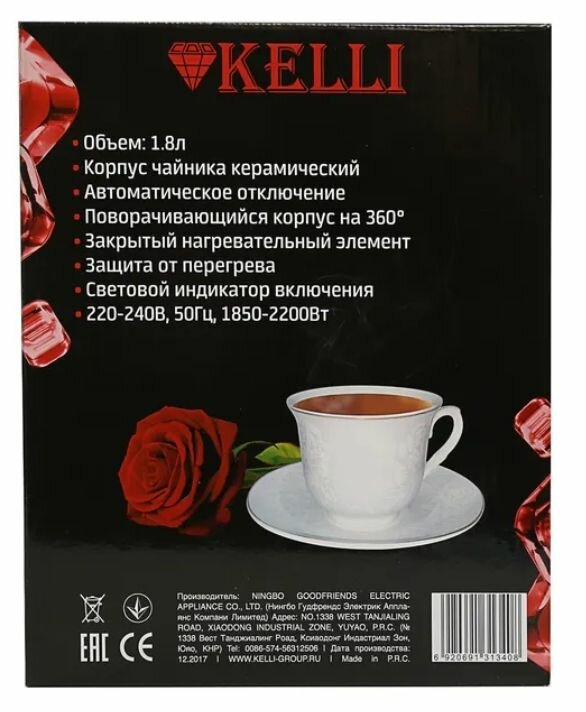 Купить KELLI 6920690013767 Чайник Kelli KL-1376 керамич./черный, 1,8л