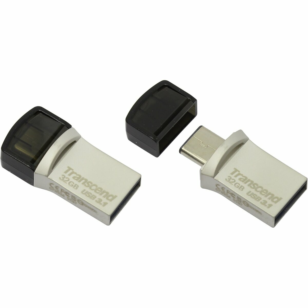 Transcend Накопитель USB flash 32ГБ Transcend JetFlash 890S TS32GJF890S, OTG, черно-серебр. (USB3.1) (ret)