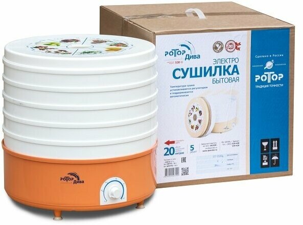 Сушилка для овощей и фруктов Ротор-Дива СШ-007, 5 поддонов, гофротара