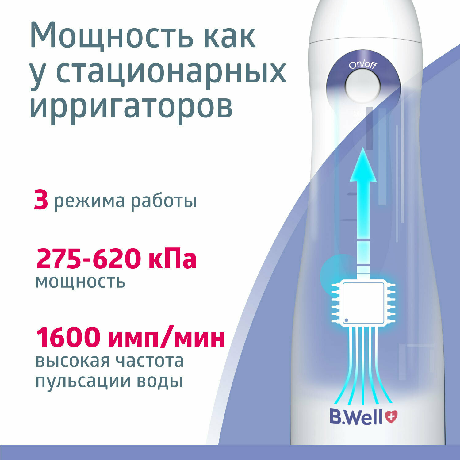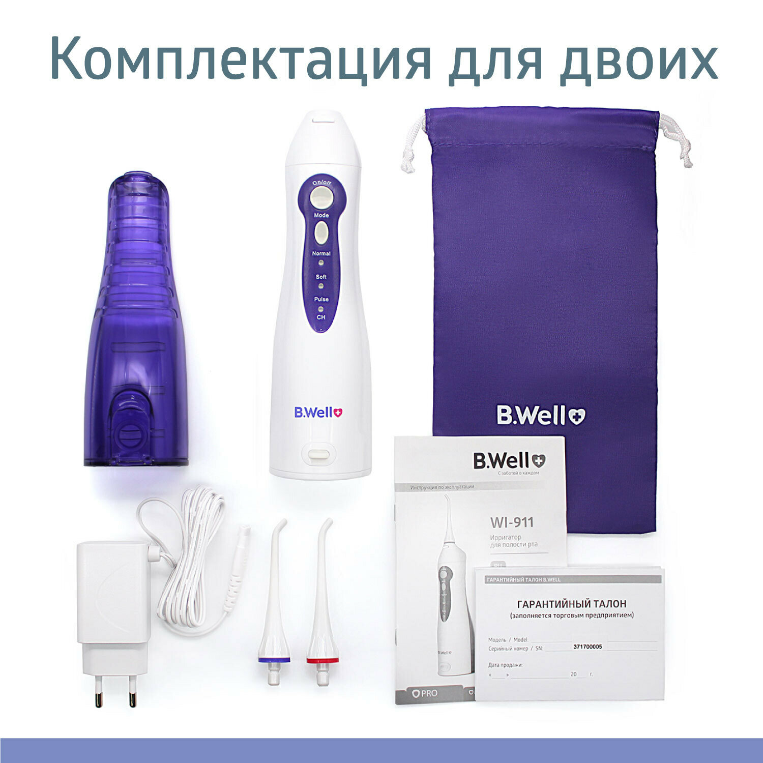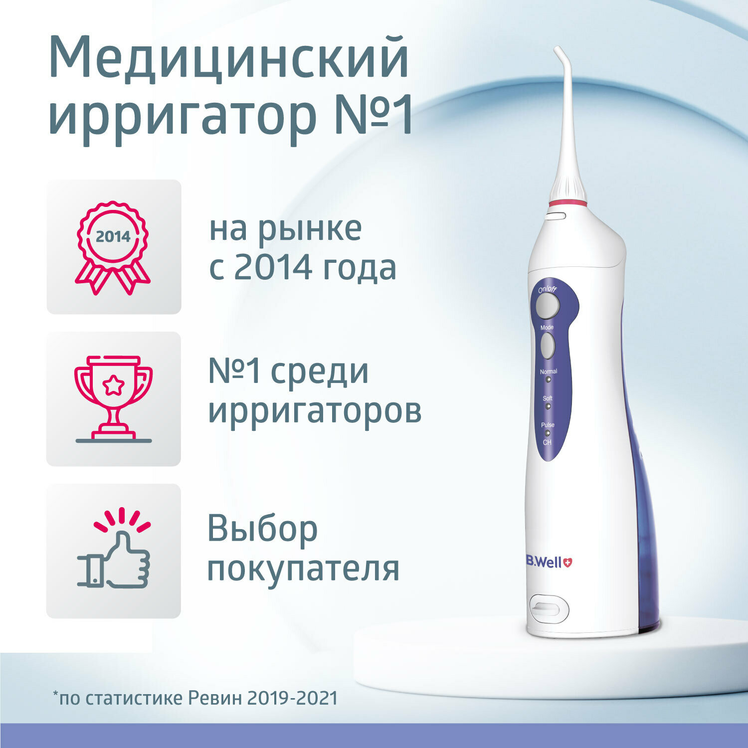 Ирригатор медицинский B.Well WI-911 белый/фиолетовый, портативный, 2 насадки