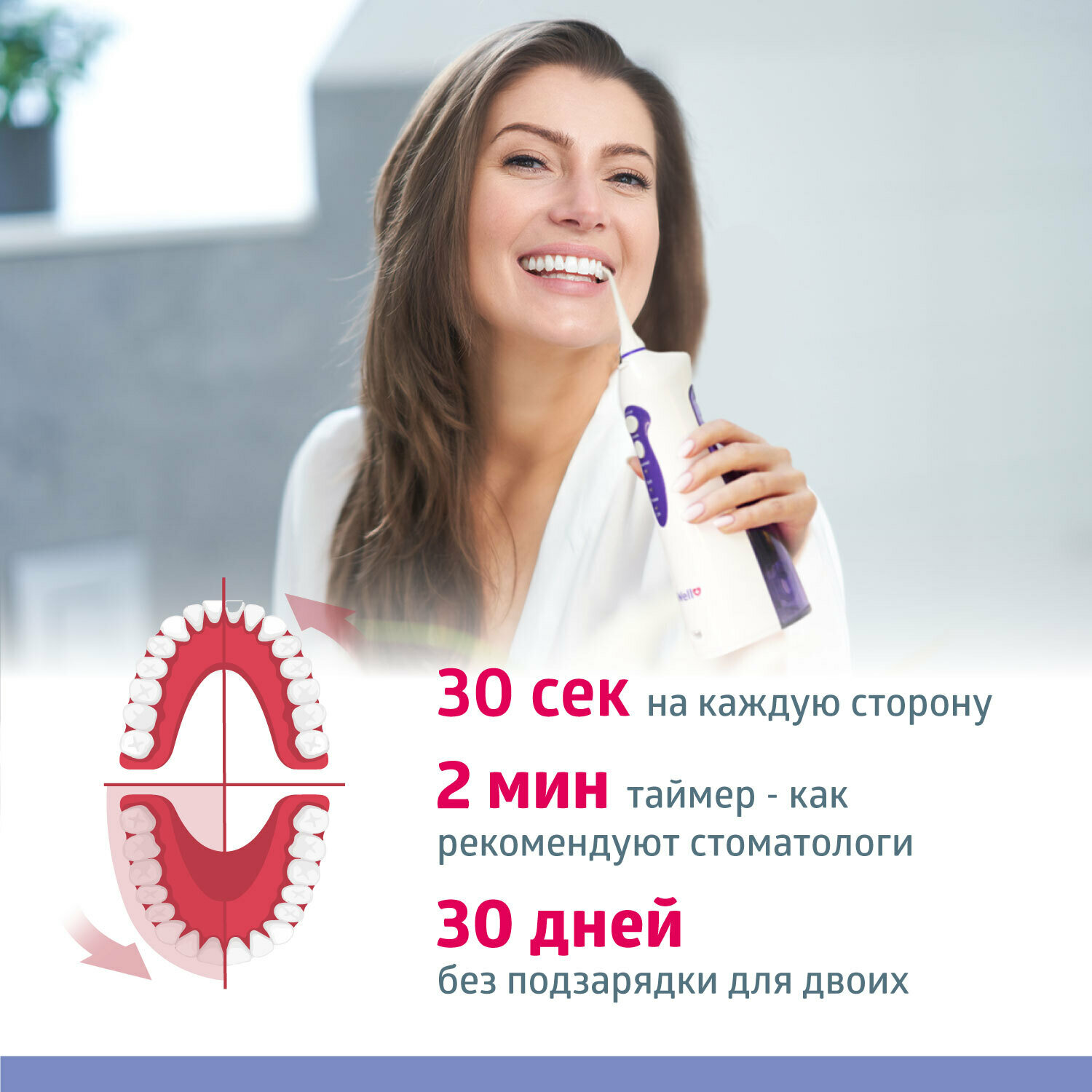 | Плюсы: | нравится ощущение чистоты после использования, струя тоньше, чем зубная нить, выбивает все из тех самых "труднодоступных мест" за секунды! |