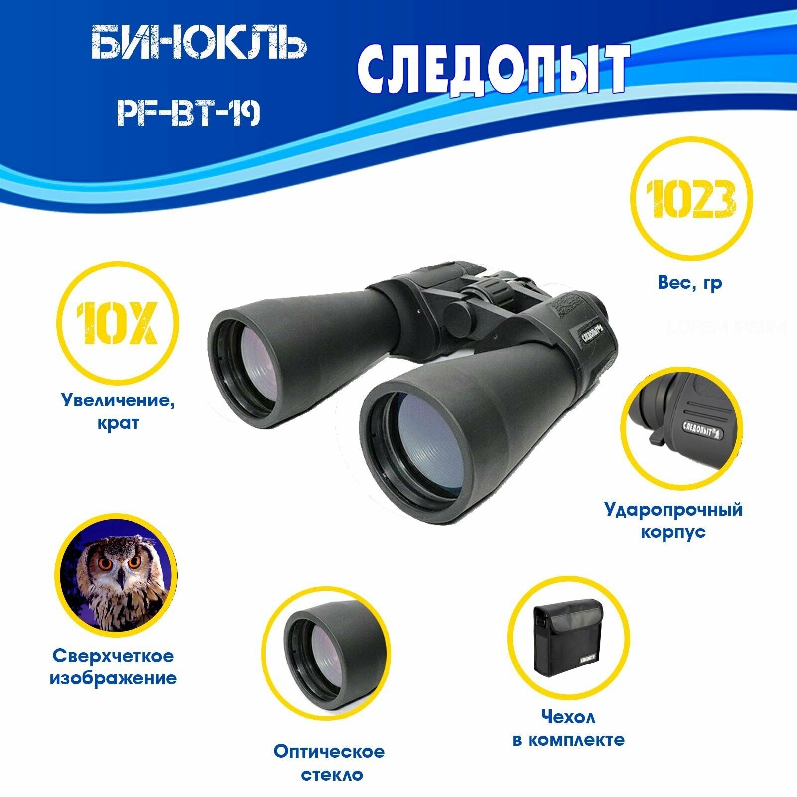 Купить Бинокль "следопыт", 10х60, черный, 227*195*60 мм, 1023 г, в чехле PF-BT-19