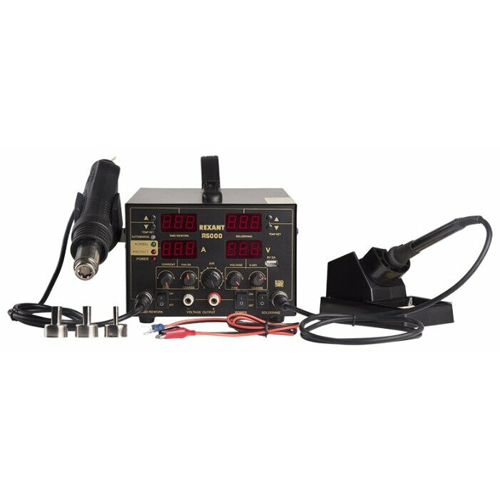 Паяльная станция REXANT, 3 в 1: паяльник+термофен+источник питания, 100-480 °С