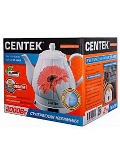 Чайник электрический Centek CT-0062, керамика, 2 л, 2000 Вт,"гербера" Centek 2342357 .