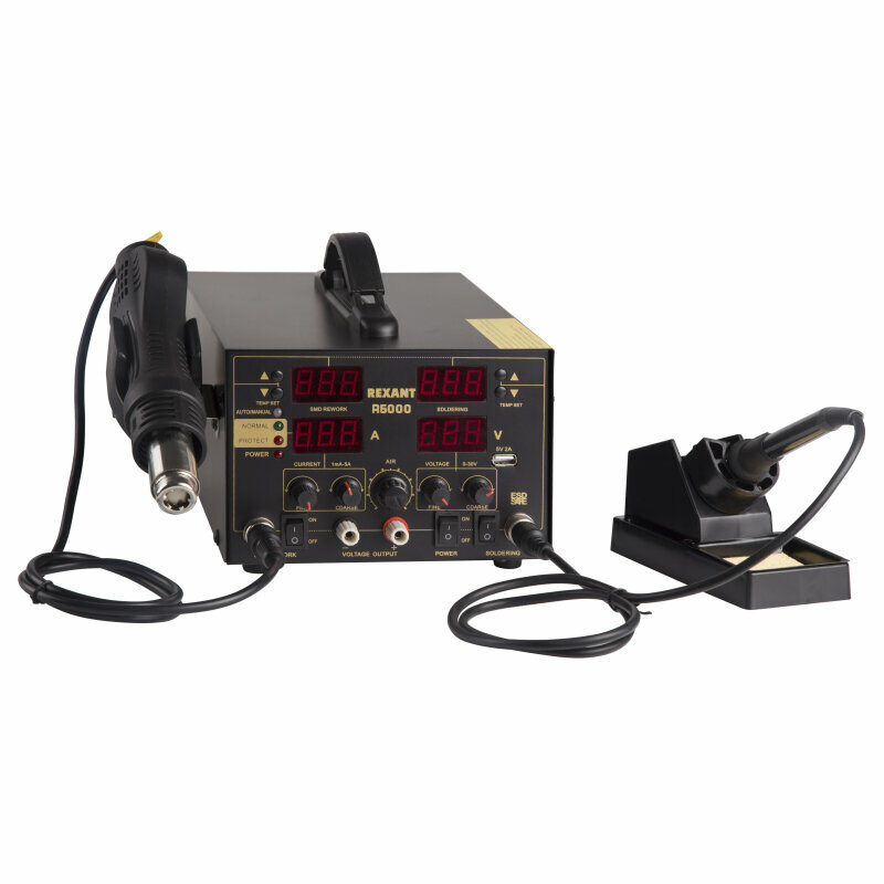 Паяльная станция REXANT, 3 в 1: паяльник+термофен+источник питания, 100-480 °С