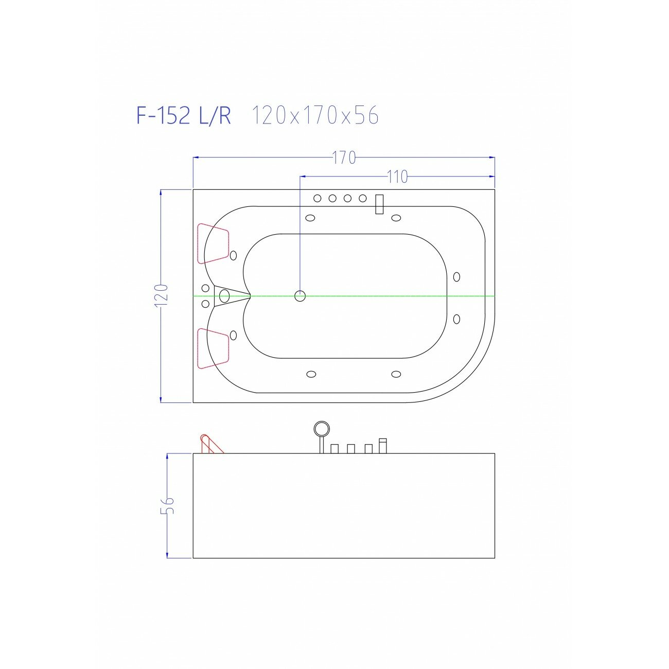 Акриловая ванна Frank F152 L 170х120 с гидромассажем левая
