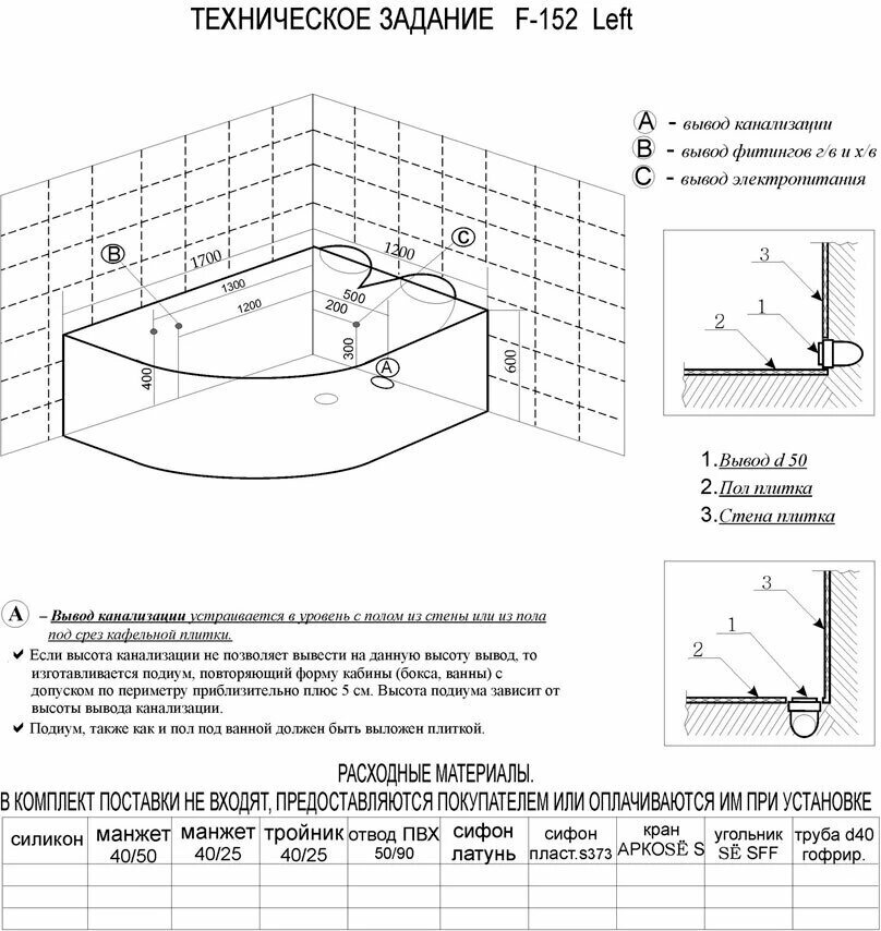 СохранитьВанна Frank F152L левая Размер 170x120x60см интересное: