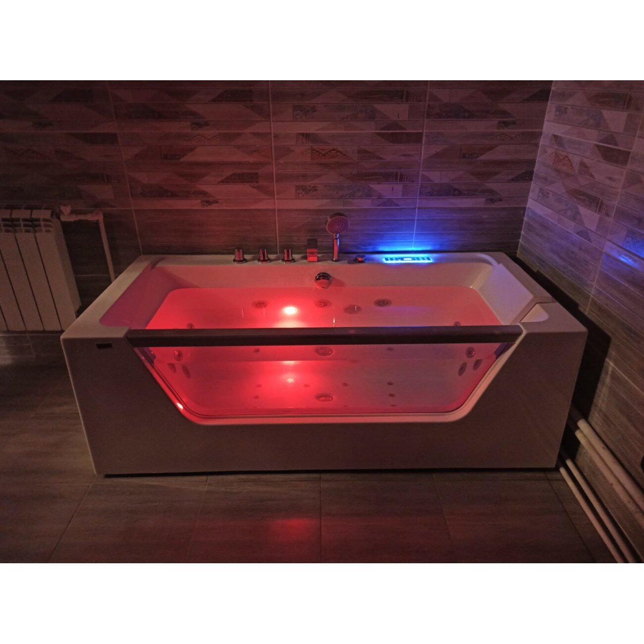 | Отзыв: | По дизайну просто шикарная ванная. Моется очень легко, цвет поверхность не изменила за время использования. Вода нигде не застаивается. Лежать в ней удобно и она вместительная. Дети просто пропадают здесь:). Форсунок много и каждая с многоцветной подсветкой. А в боковой стенке установлен многоцветный подводный фонарь. Предусмотрено всё для удобства. |