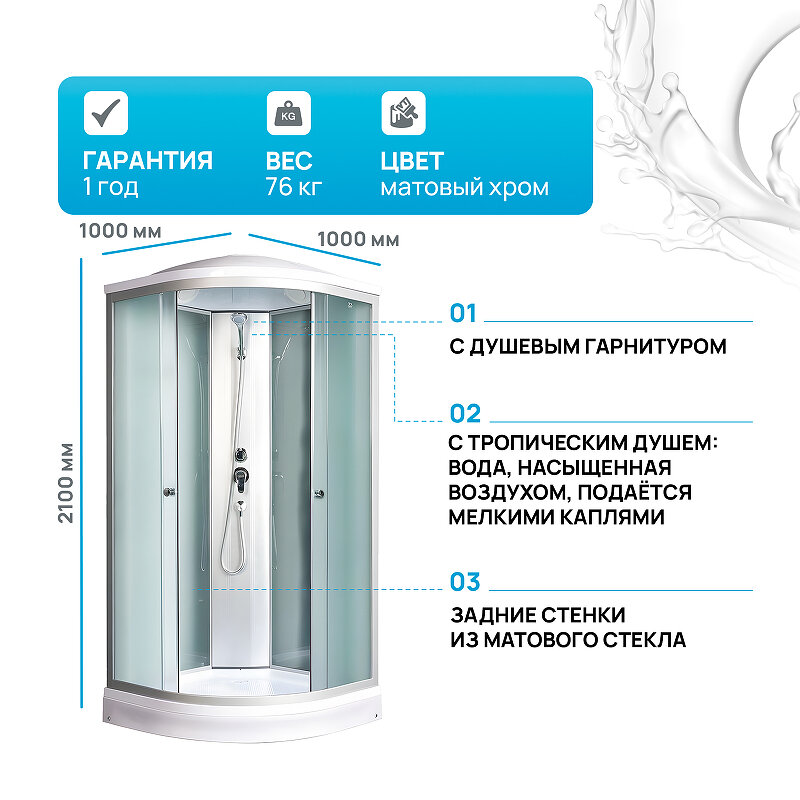 матовое покрытие стекол во всей кабинке качественный смеситель. |